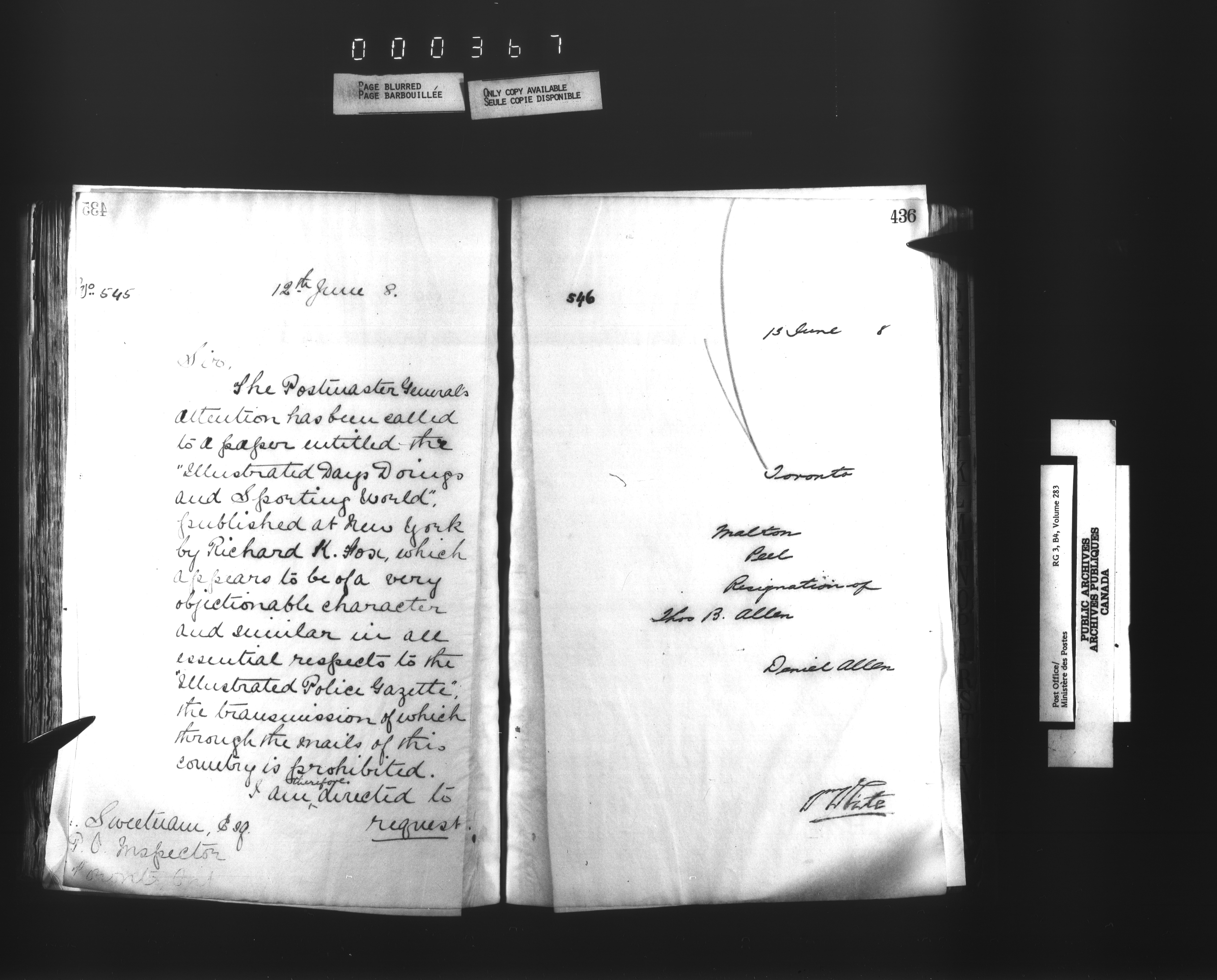 Deputy Postmaster General : correspondence addressed to the Post Office Inspectors, 1851-1902 - 1698