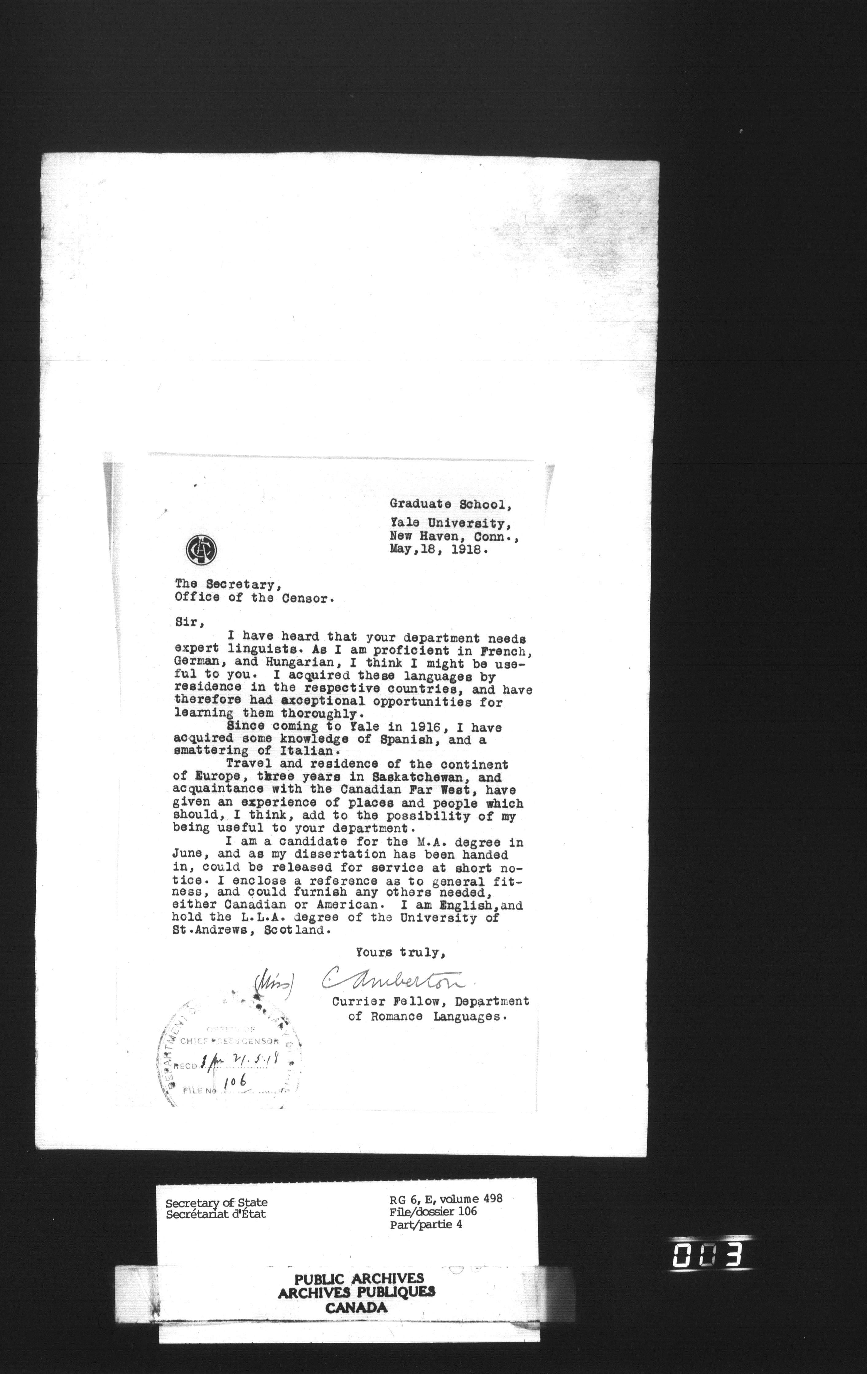 Secretary of State : Chief Press Censor - 17