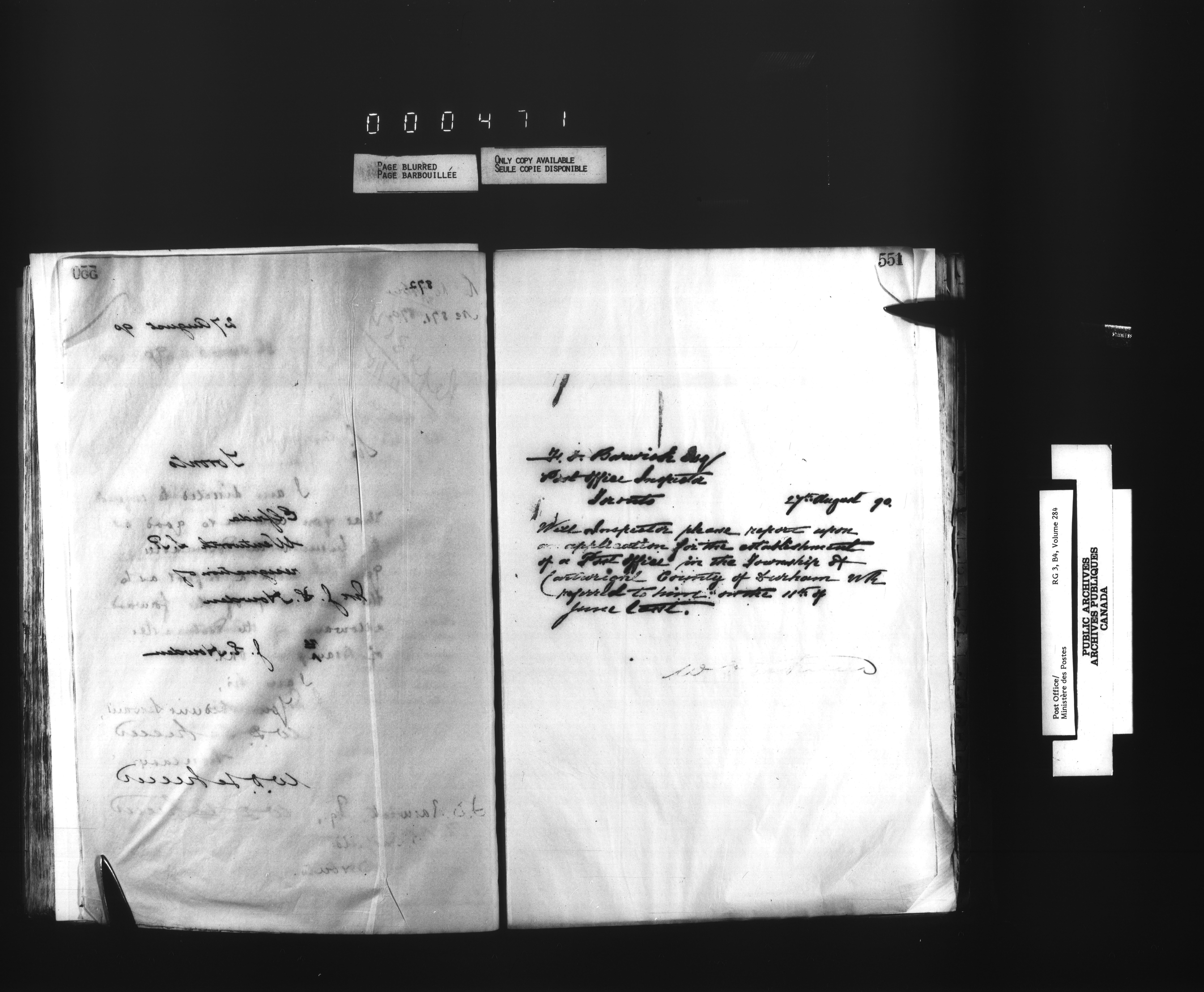 Correspondence from the Secretary to Post Office Inspectors : Letterbooks, Ontario- Toronto - 1700