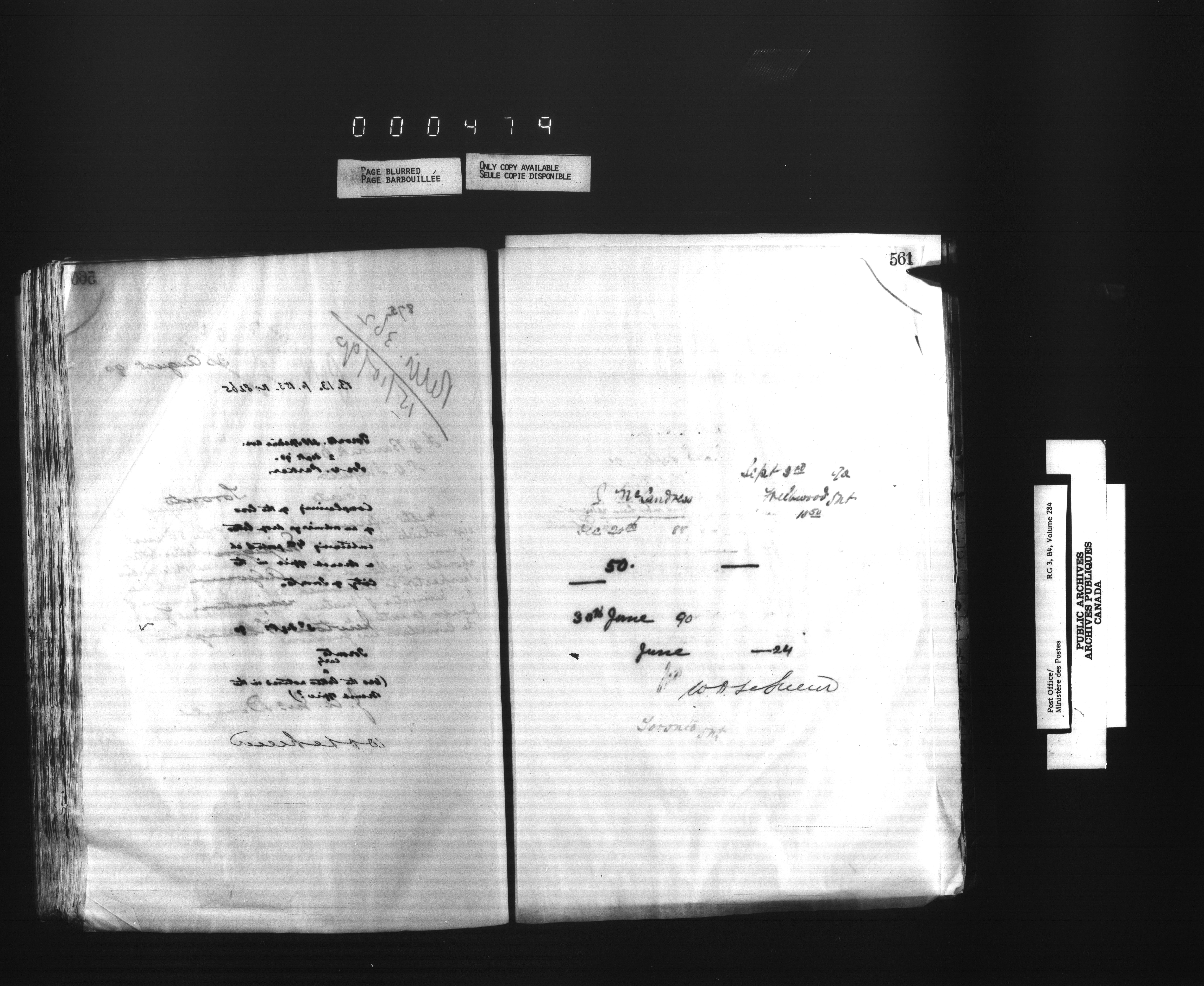 Correspondence from the Secretary to Post Office Inspectors : Letterbooks, Ontario- Toronto - 1700