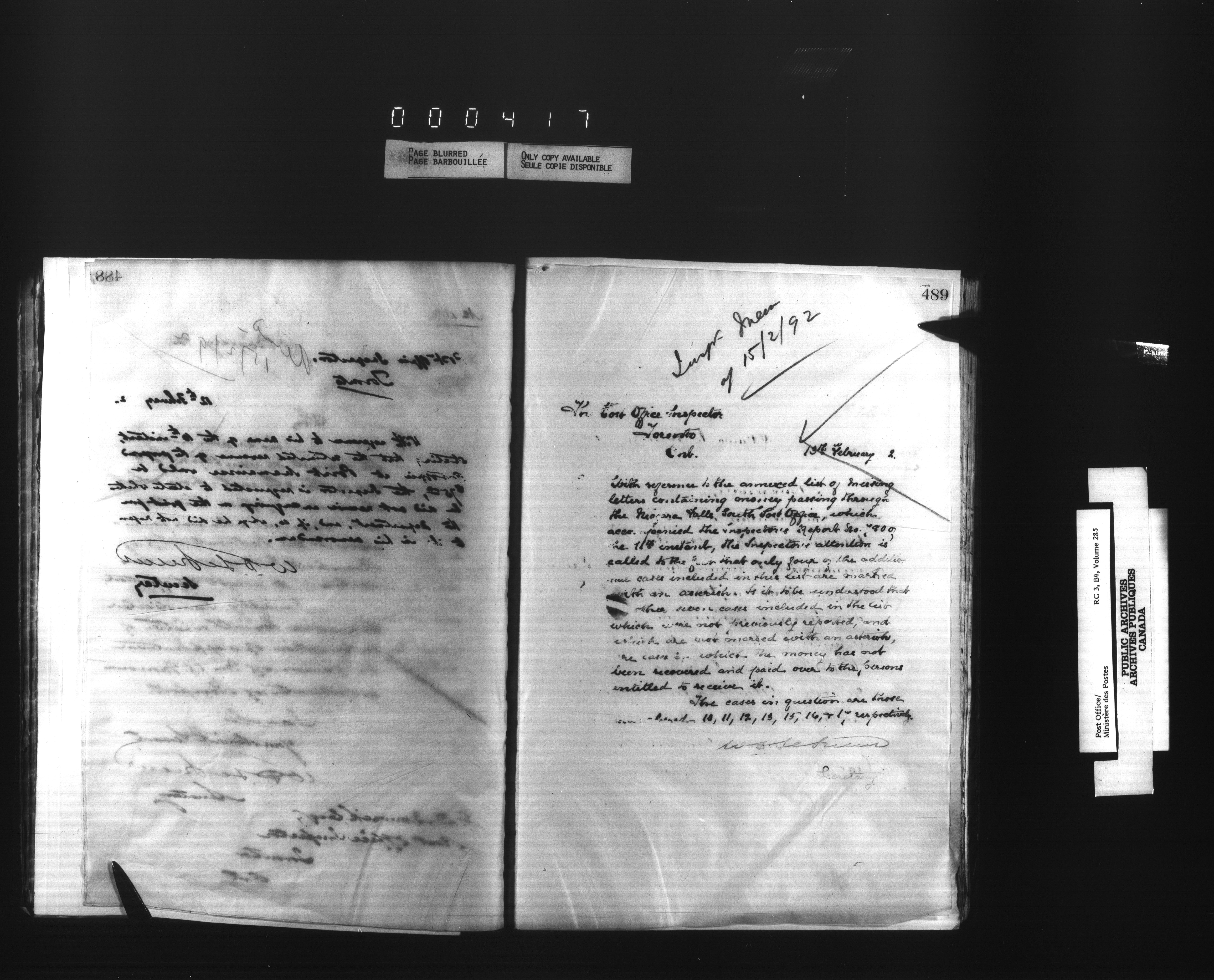 Correspondence from the Secretary to Post Office Inspectors : Letterbooks, Ontario- Toronto - 1700
