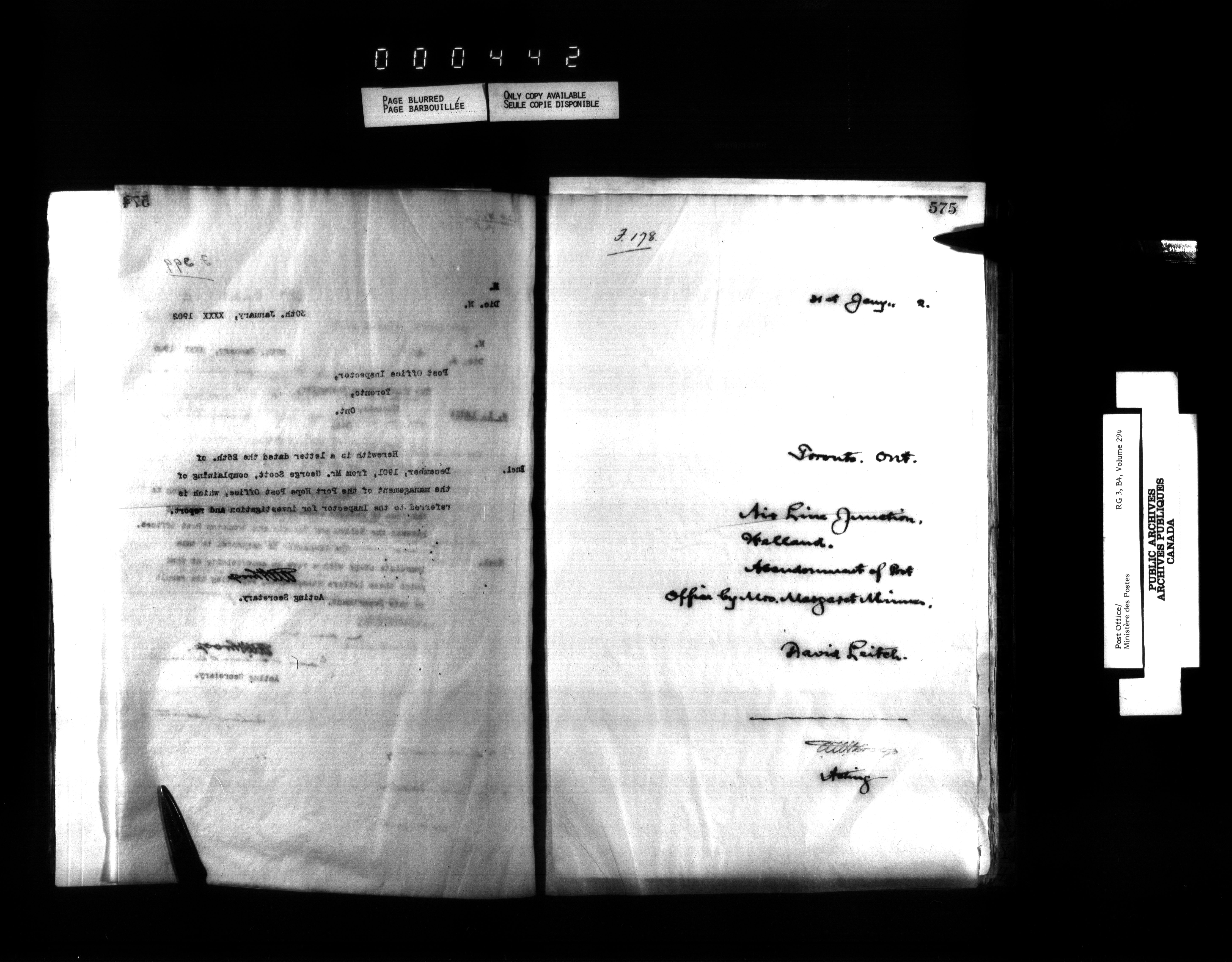 Correspondence from the Secretary to Post Office Inspectors : Letterbooks, Ontario- Toronto - 1709