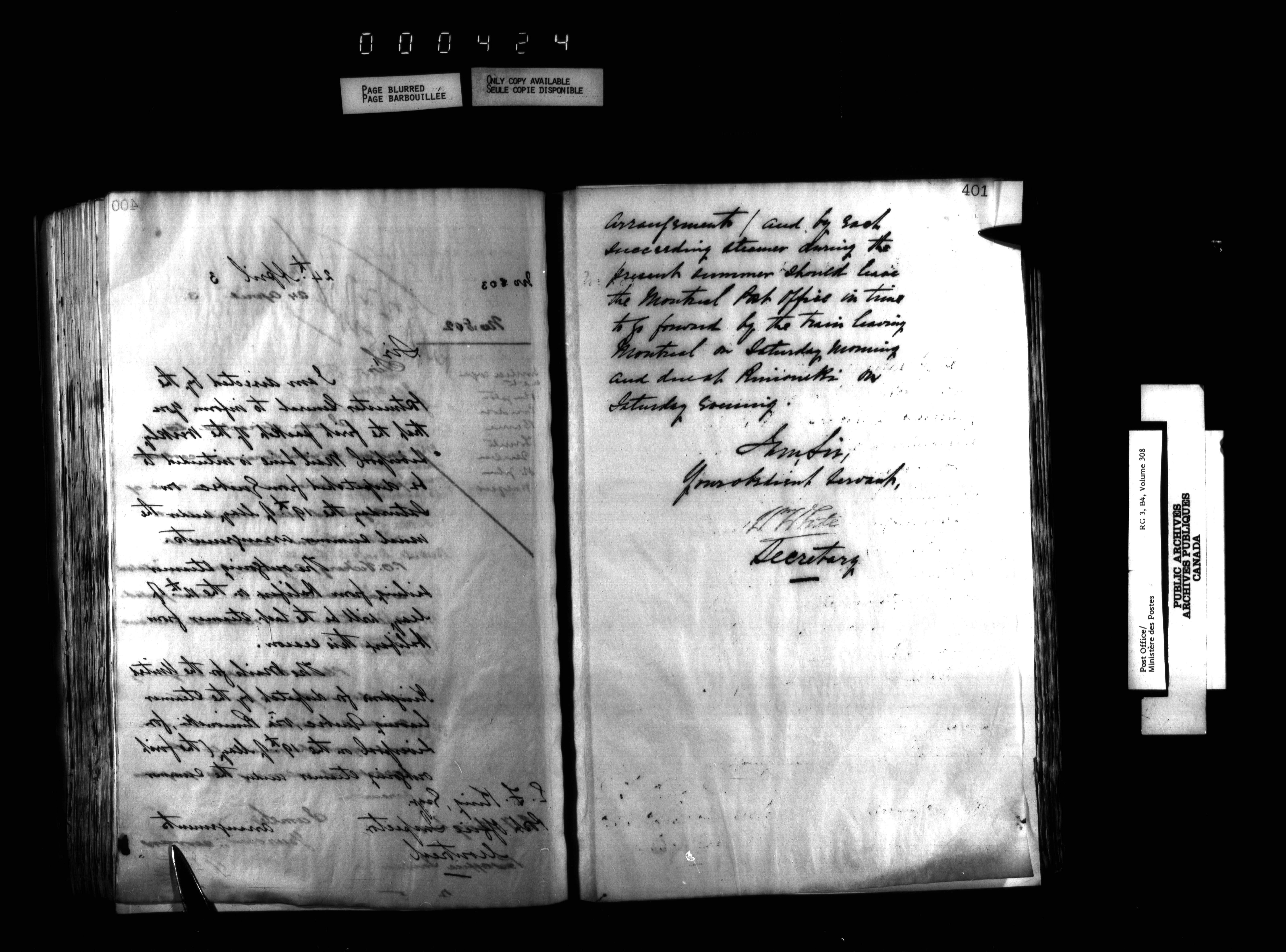 Correspondence from the Secretary to Post Office Inspectors : Letterbooks, Quebec- Montreal - 1716