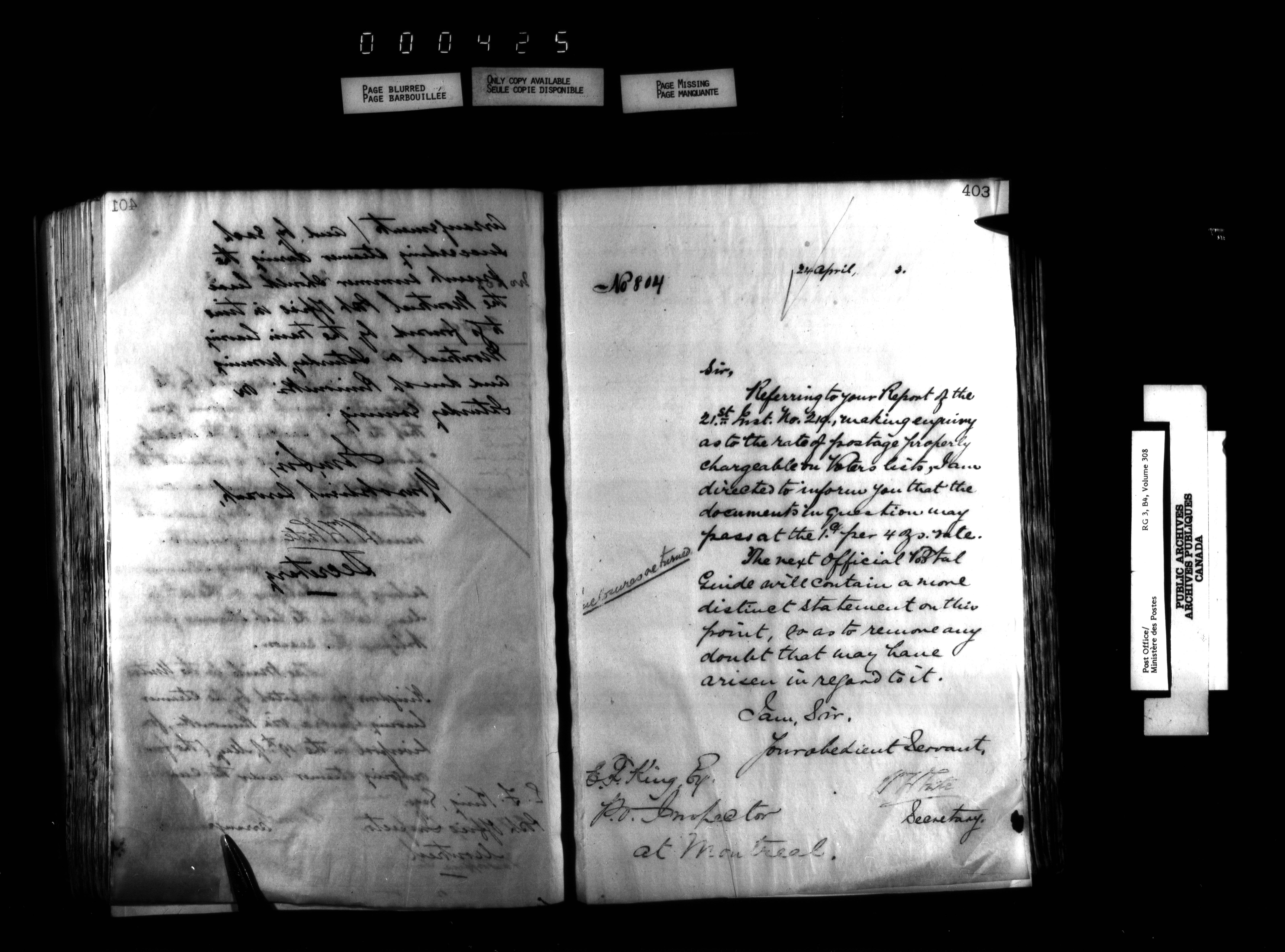 Correspondence from the Secretary to Post Office Inspectors : Letterbooks, Quebec- Montreal - 1716