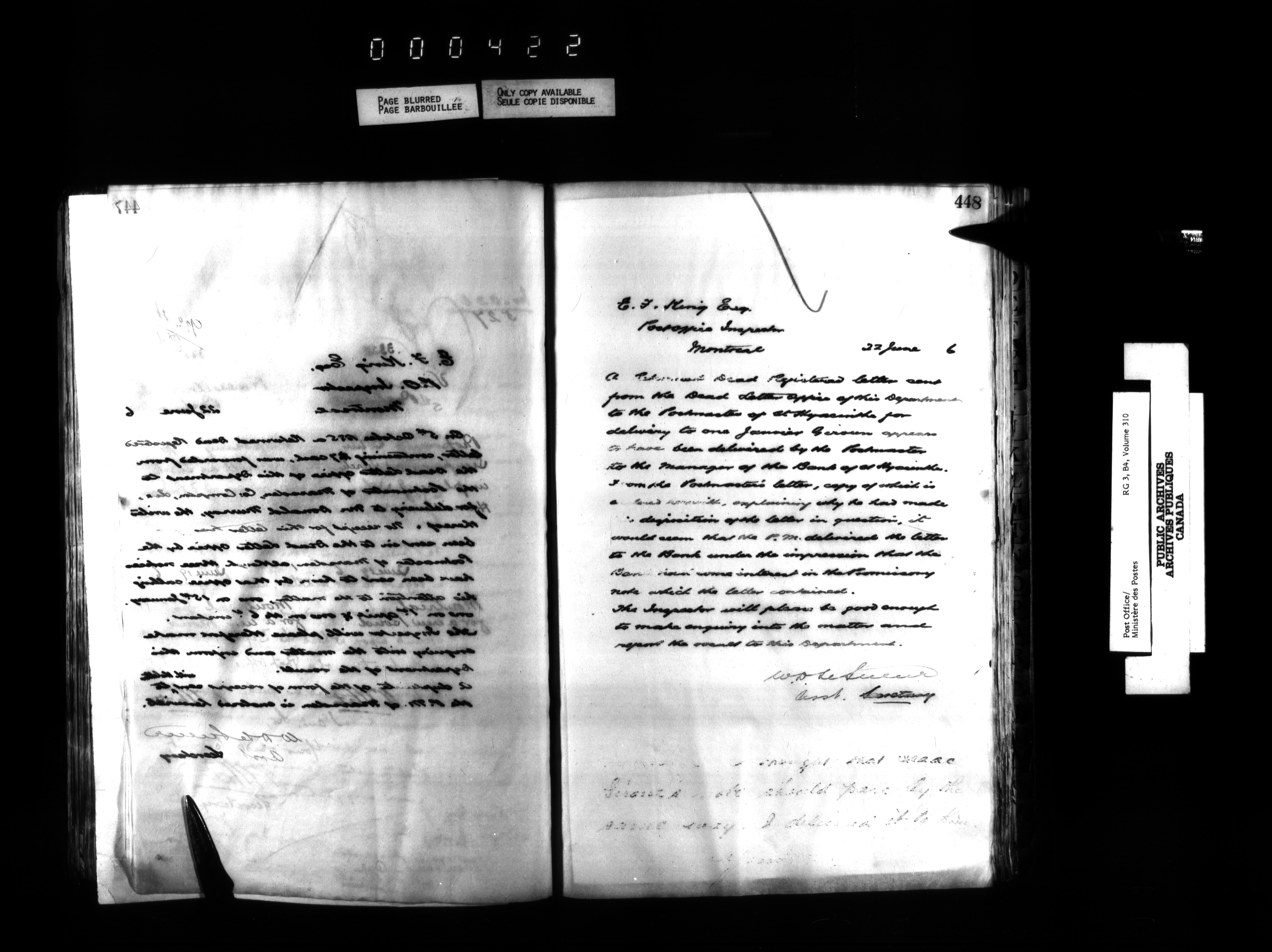 Correspondence from the Secretary to Post Office Inspectors : Letterbooks, Quebec- Montreal - 1717