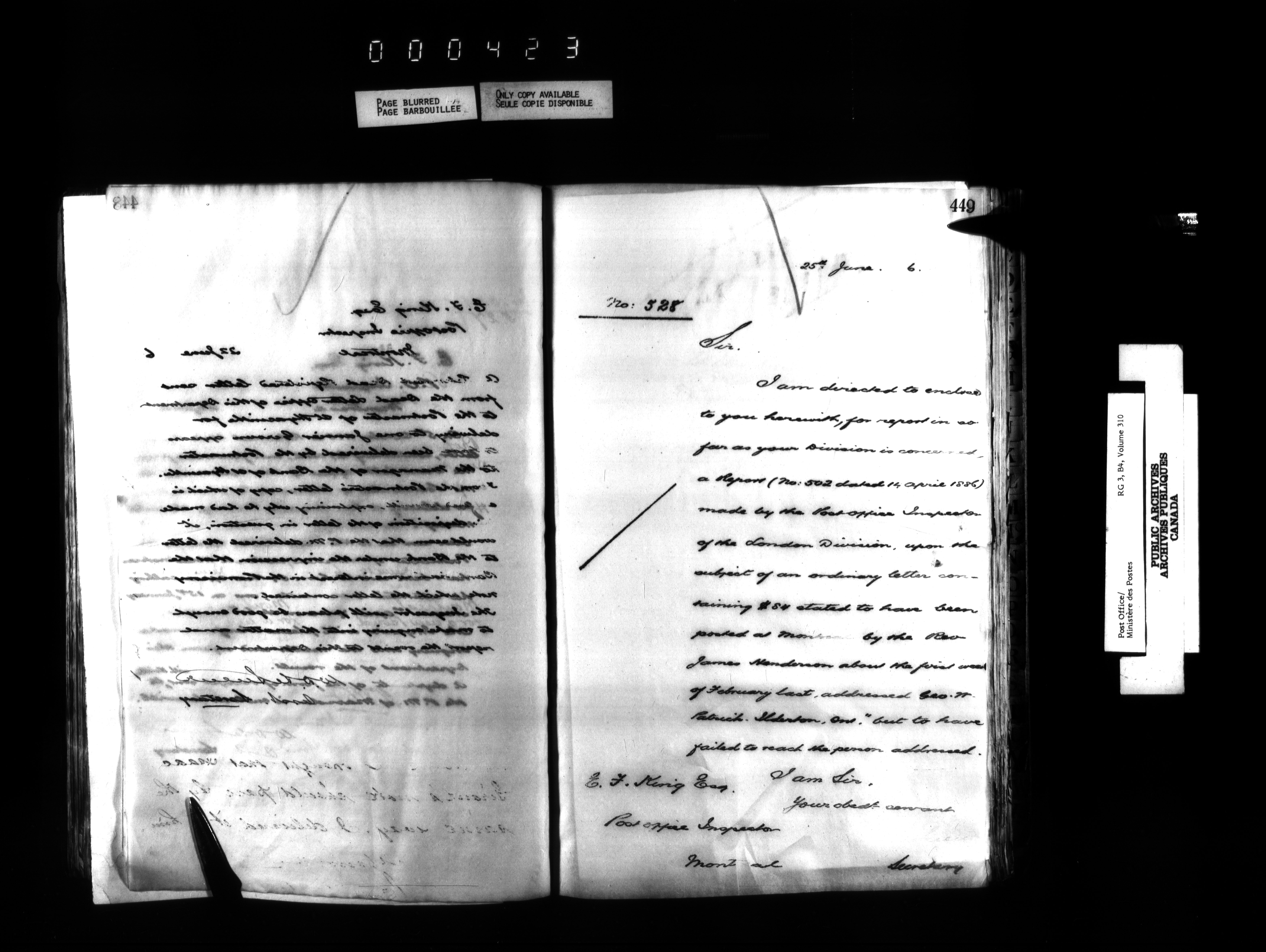 Correspondence from the Secretary to Post Office Inspectors : Letterbooks, Quebec- Montreal - 1717