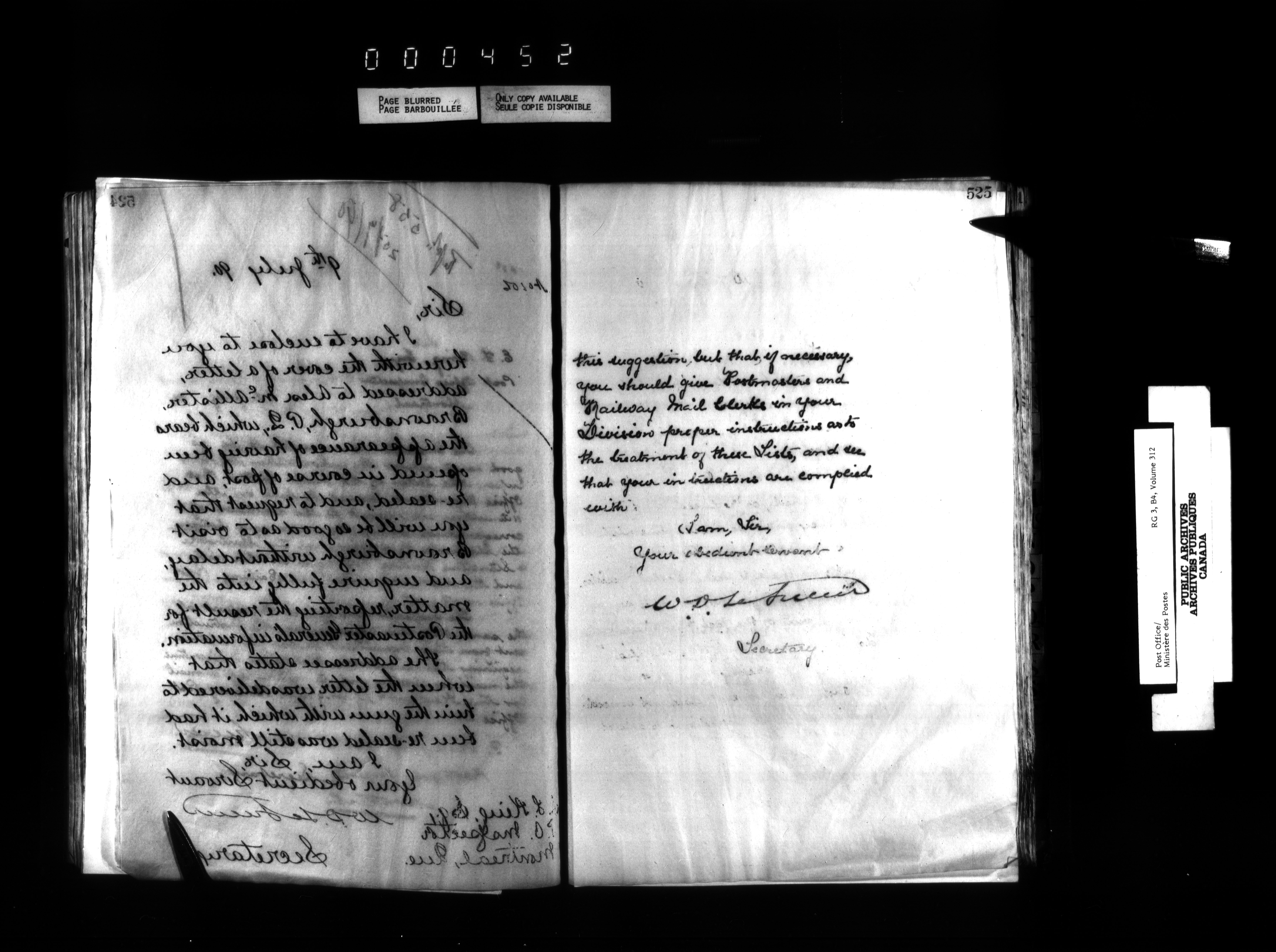Correspondence from the Secretary to Post Office Inspectors : Letterbooks, Quebec- Montreal - 1719