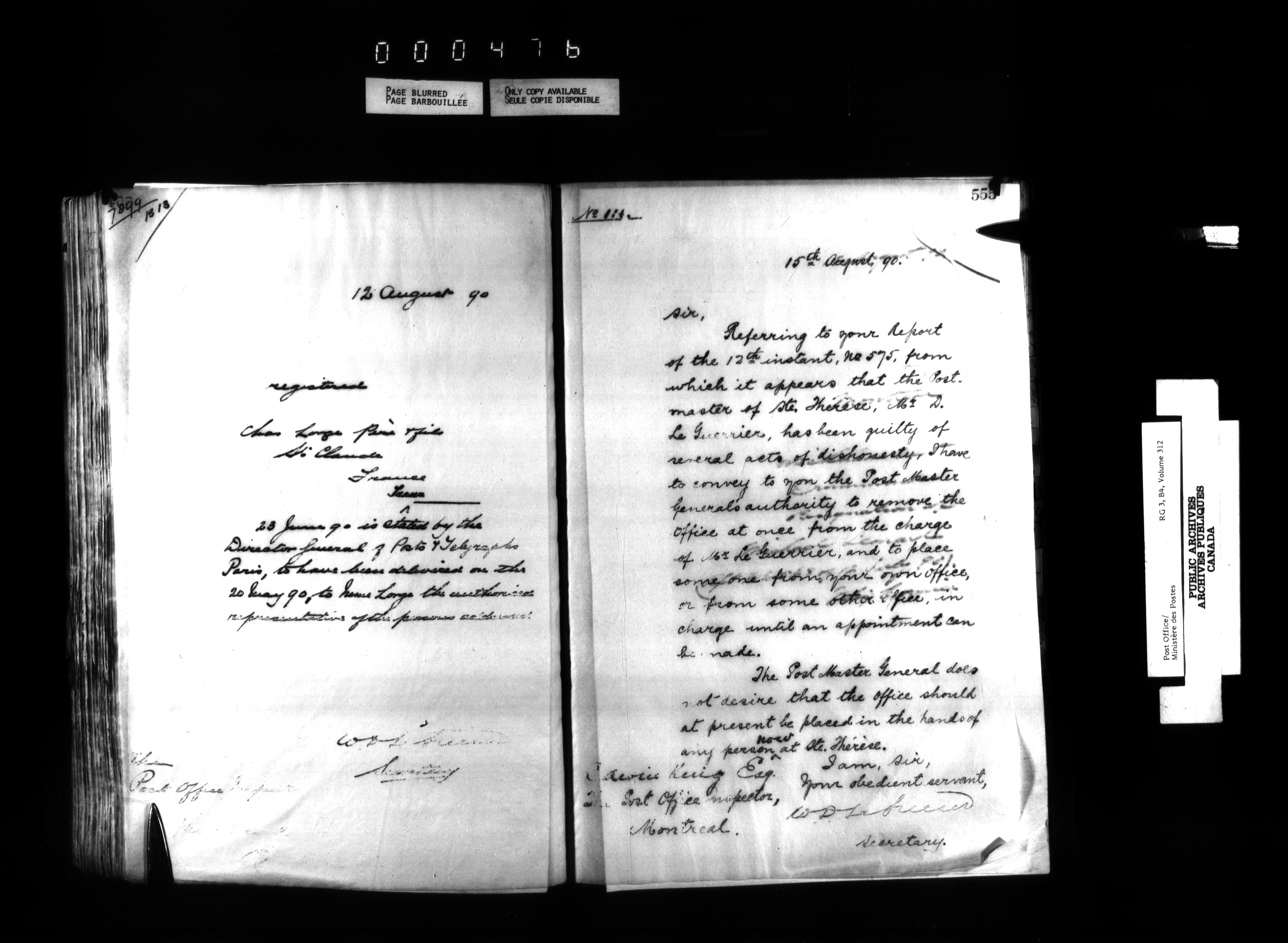 Deputy Postmaster General : correspondence addressed to the Post Office Inspectors, 1851-1902 : T-1719