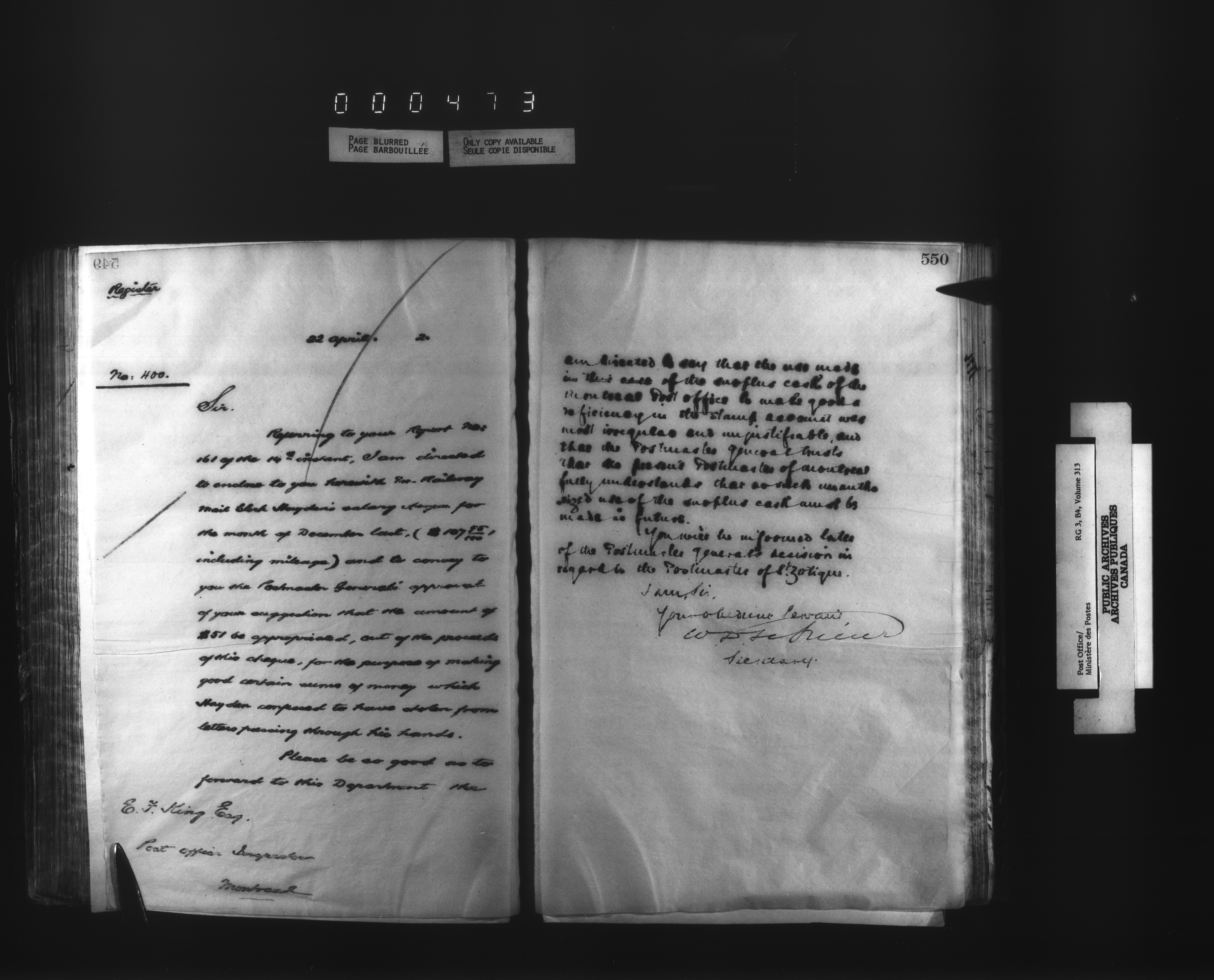 Correspondence from the Secretary to Post Office Inspectors : Letterbooks, Quebec- Montreal - 1720