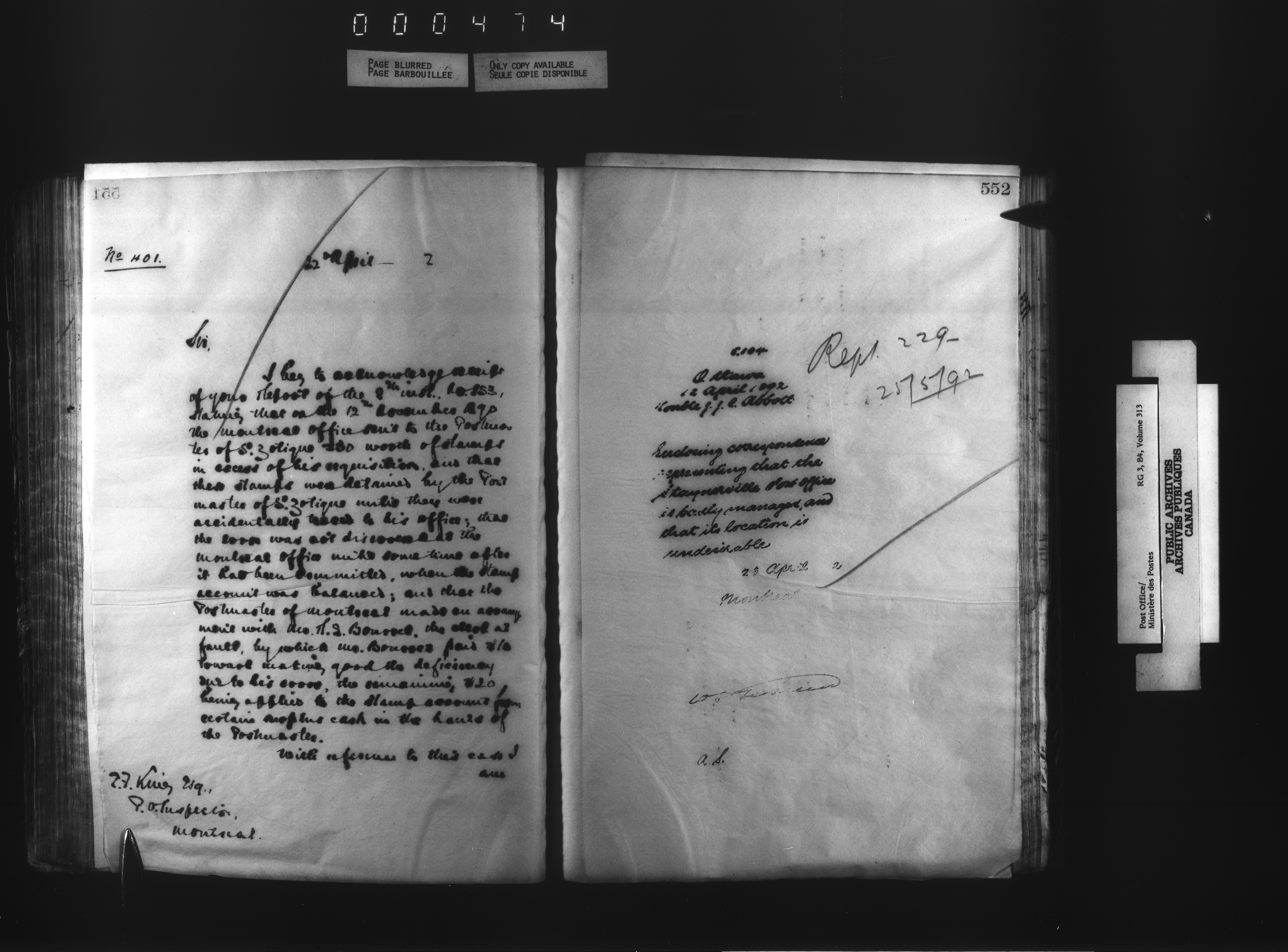 Correspondence from the Secretary to Post Office Inspectors : Letterbooks, Quebec- Montreal - 1720