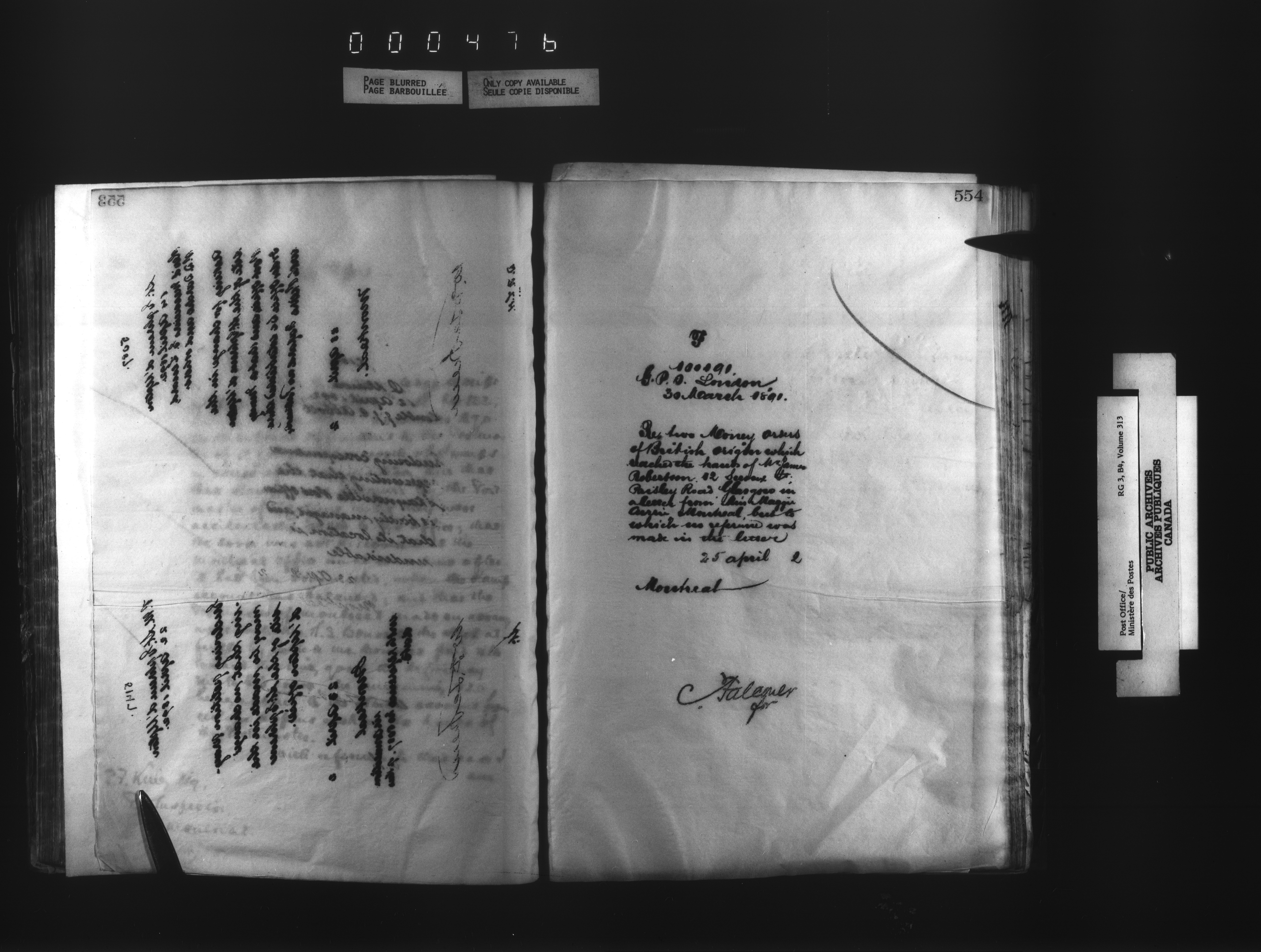 Correspondence from the Secretary to Post Office Inspectors : Letterbooks, Quebec- Montreal - 1720