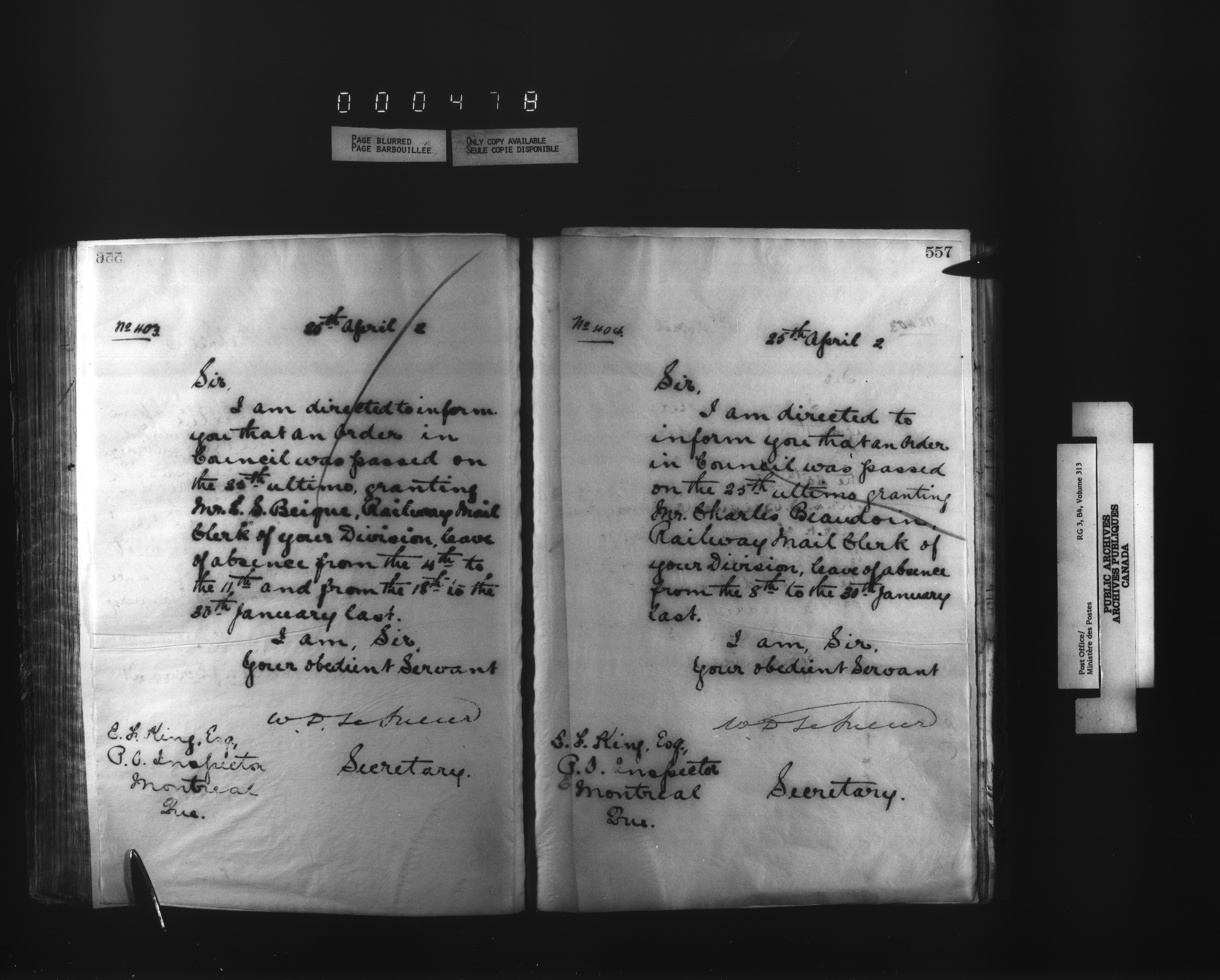 Deputy Postmaster General : correspondence addressed to the Post Office Inspectors, 1851-1902 : T-1720