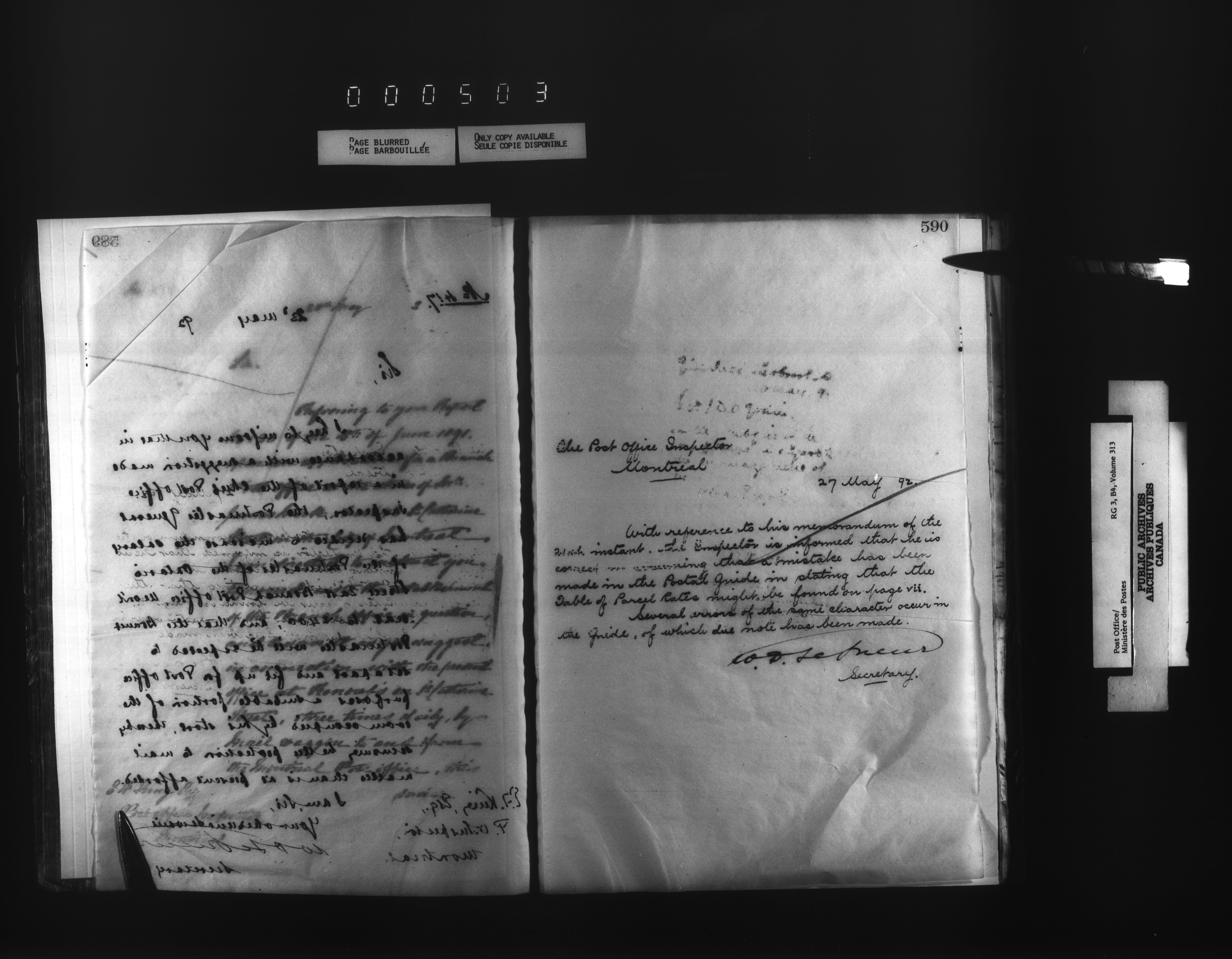 Correspondence from the Secretary to Post Office Inspectors : Letterbooks, Quebec- Montreal - 1721