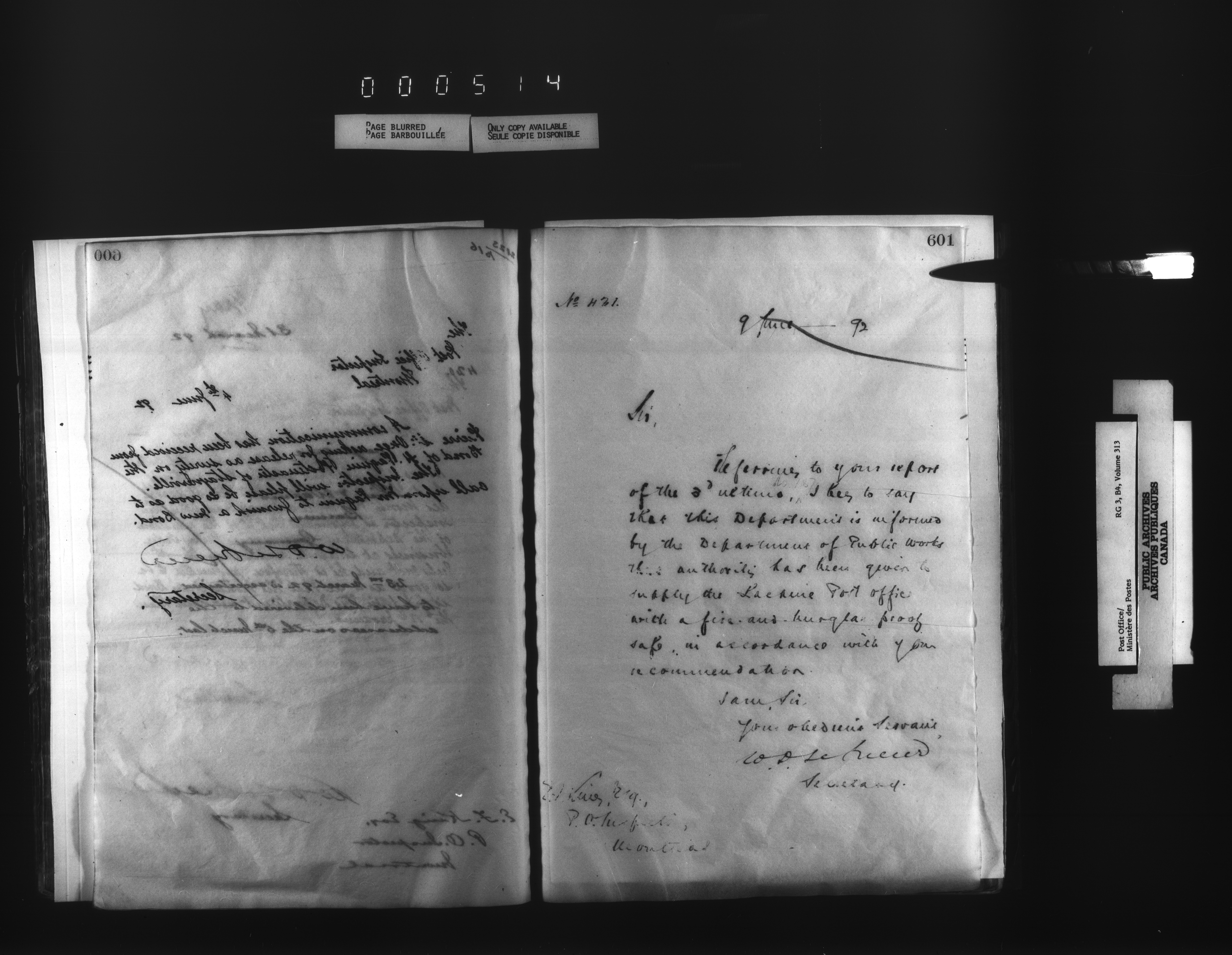 Correspondence from the Secretary to Post Office Inspectors : Letterbooks, Quebec- Montreal - 1721