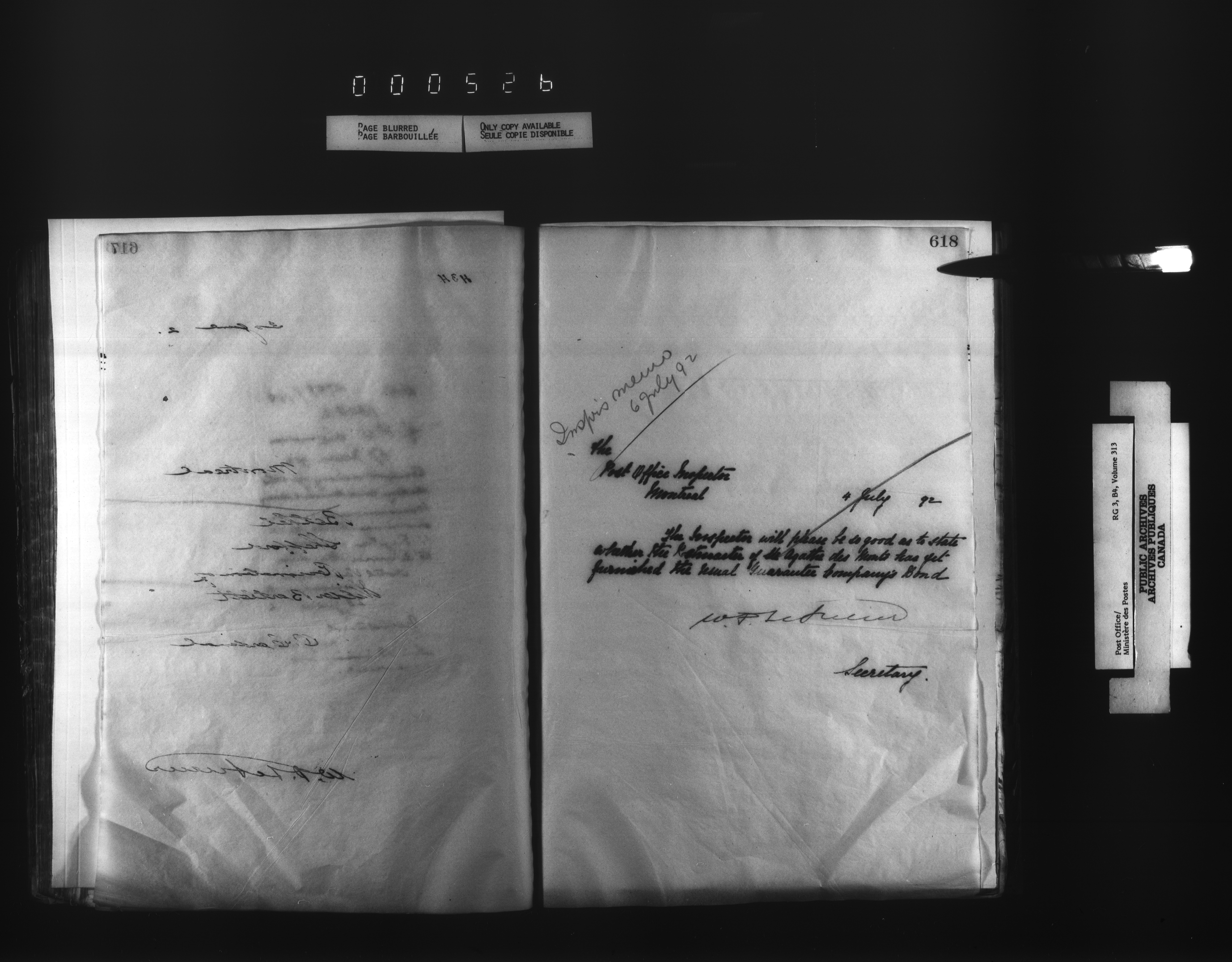 Correspondence from the Secretary to Post Office Inspectors : Letterbooks, Quebec- Montreal - 1721