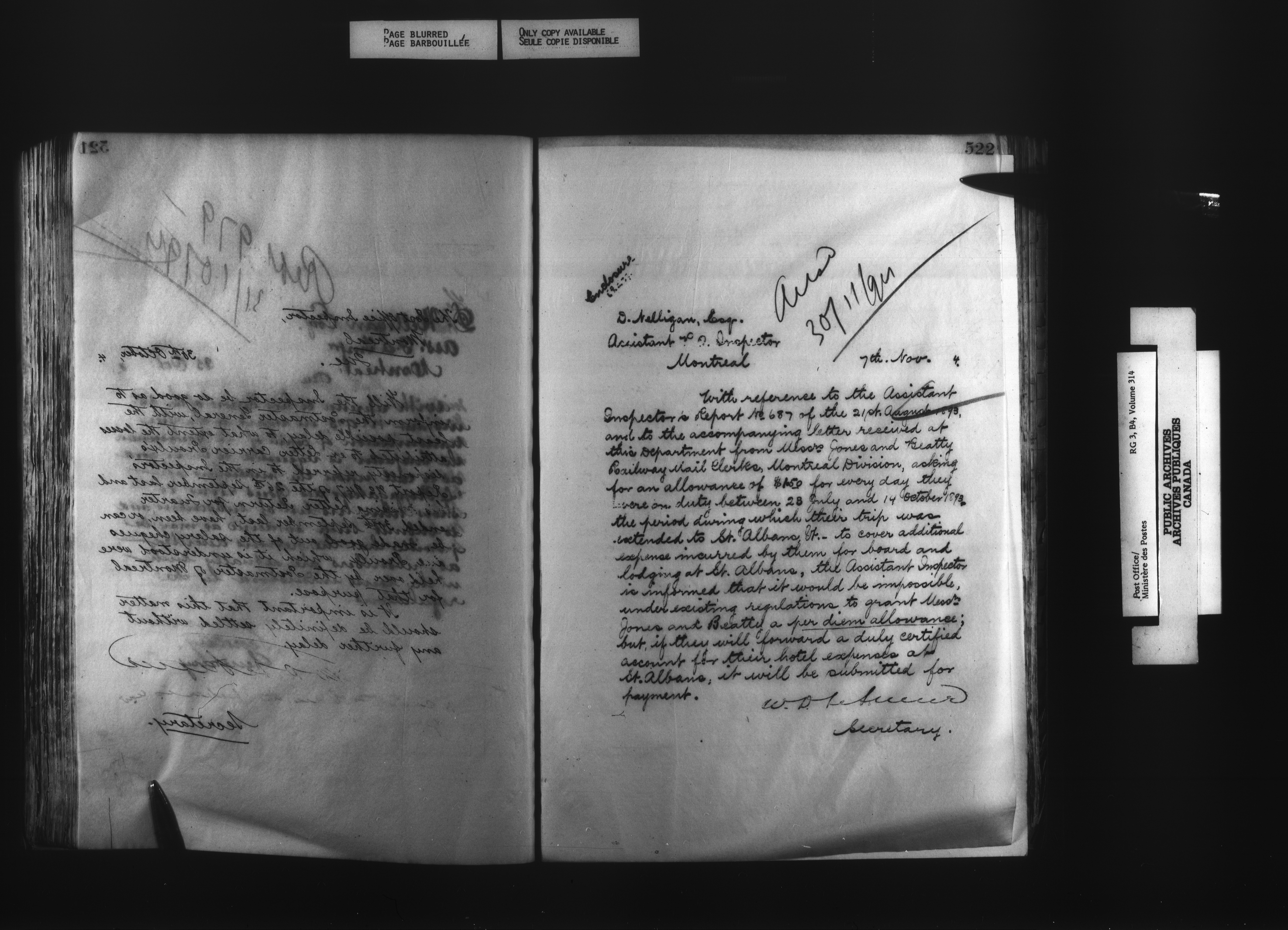 Correspondence from the Secretary to Post Office Inspectors : Letterbooks, Quebec- Montreal - 1721