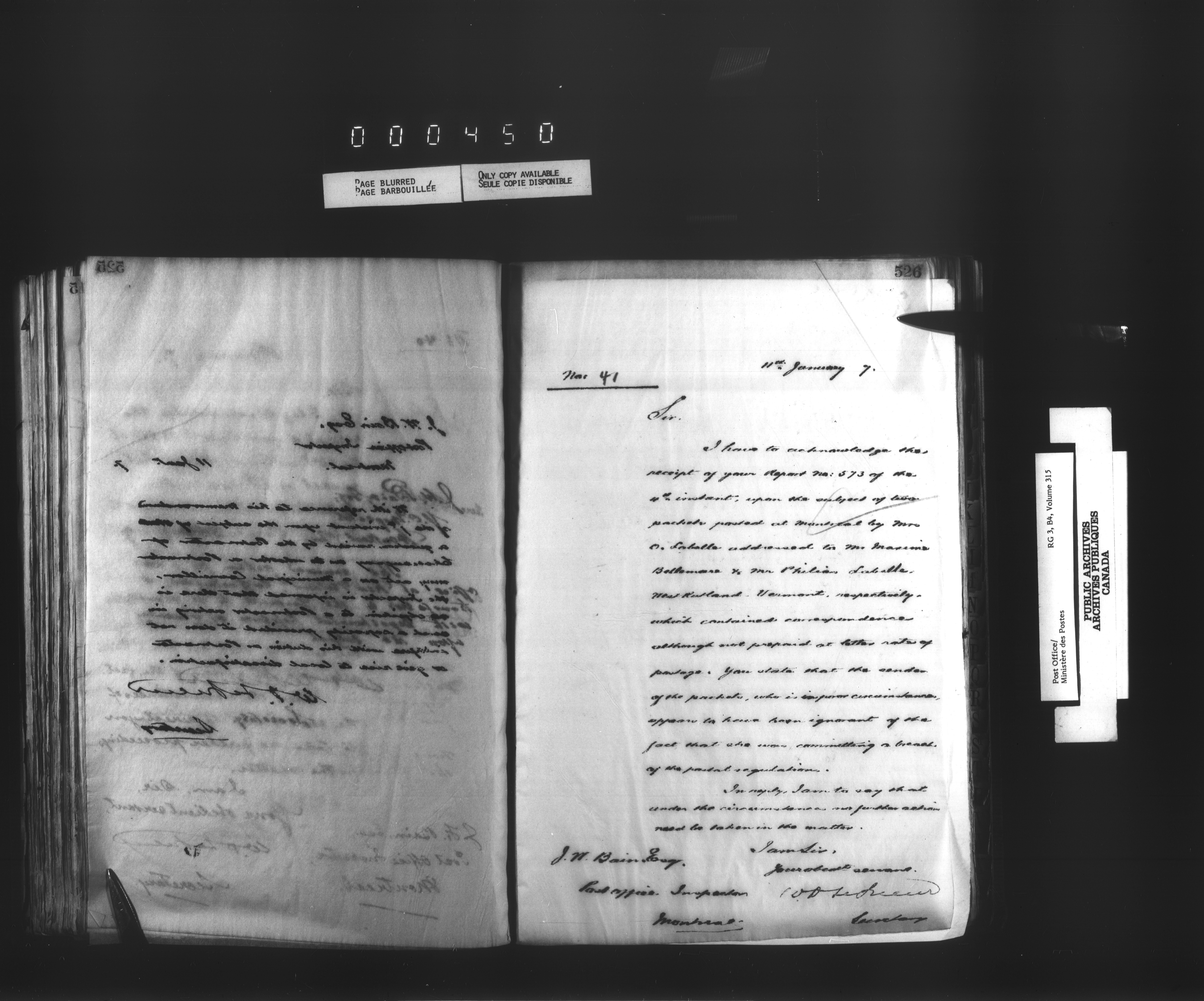 Correspondence from the Secretary to Post Office Inspectors : Letterbooks, Quebec- Montreal - 1722