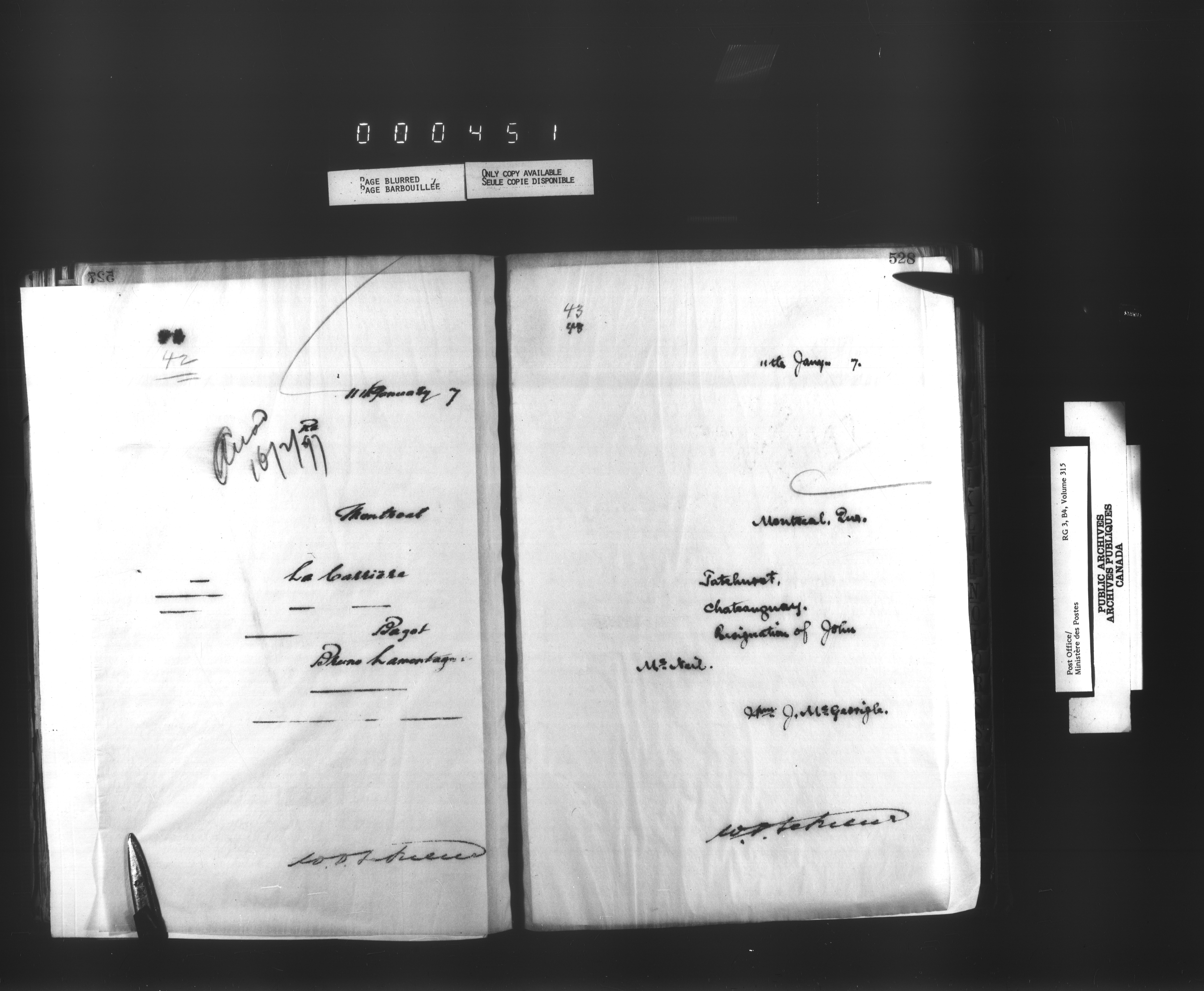 Correspondence from the Secretary to Post Office Inspectors : Letterbooks, Quebec- Montreal - 1722