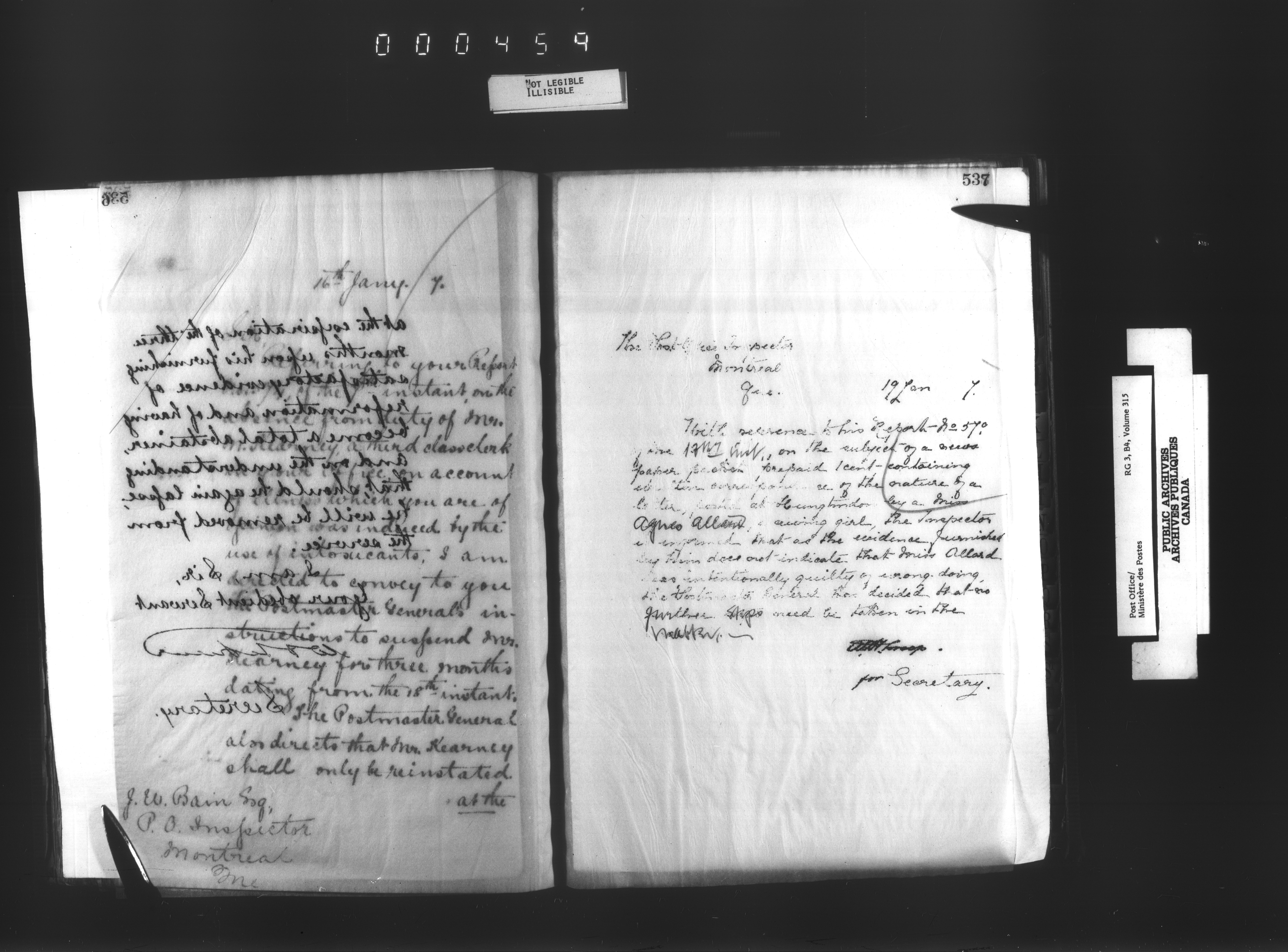 Deputy Postmaster General : correspondence addressed to the Post Office Inspectors, 1851-1902 : T-1722