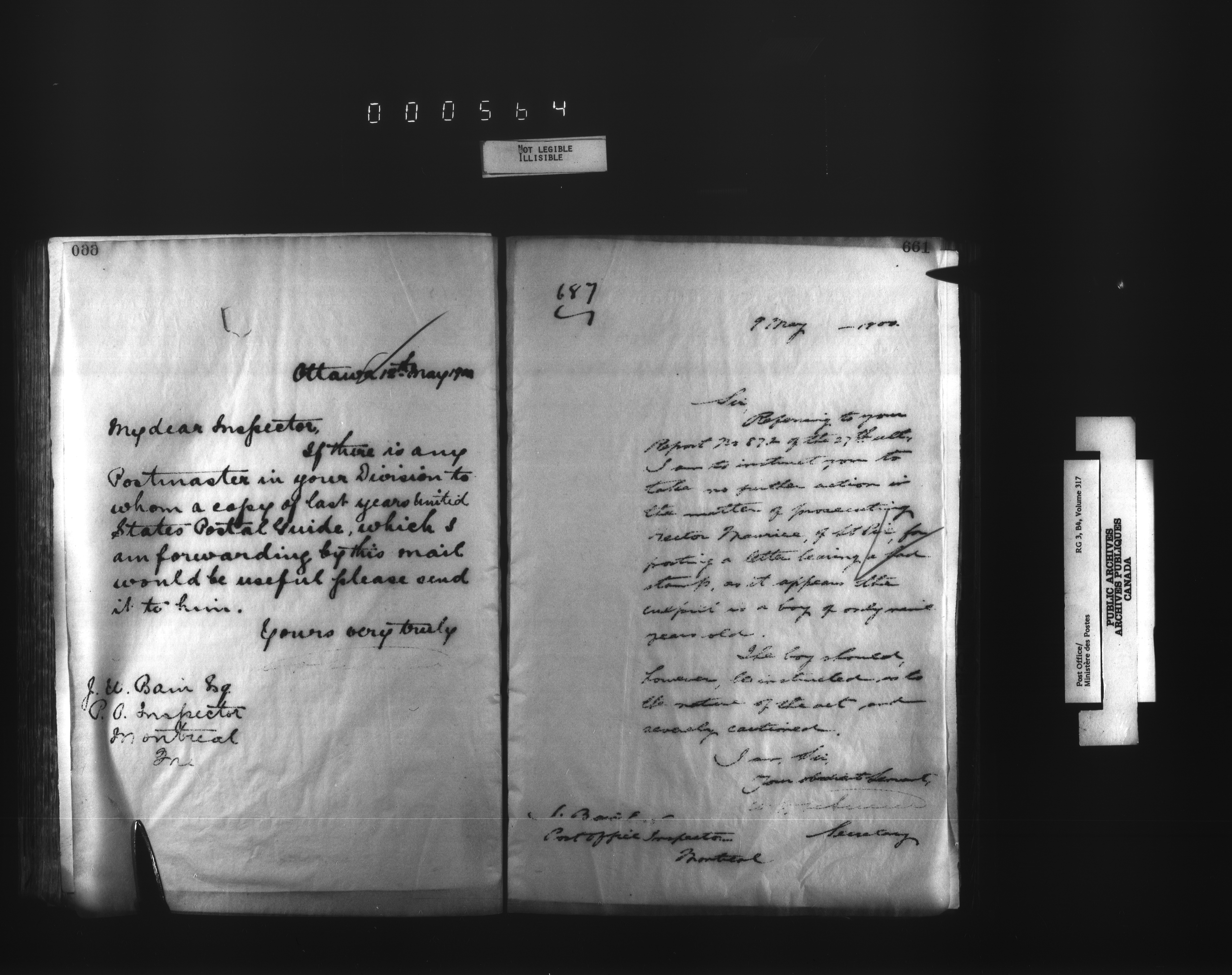 Deputy Postmaster General : correspondence addressed to the Post Office Inspectors, 1851-1902 : T-1725