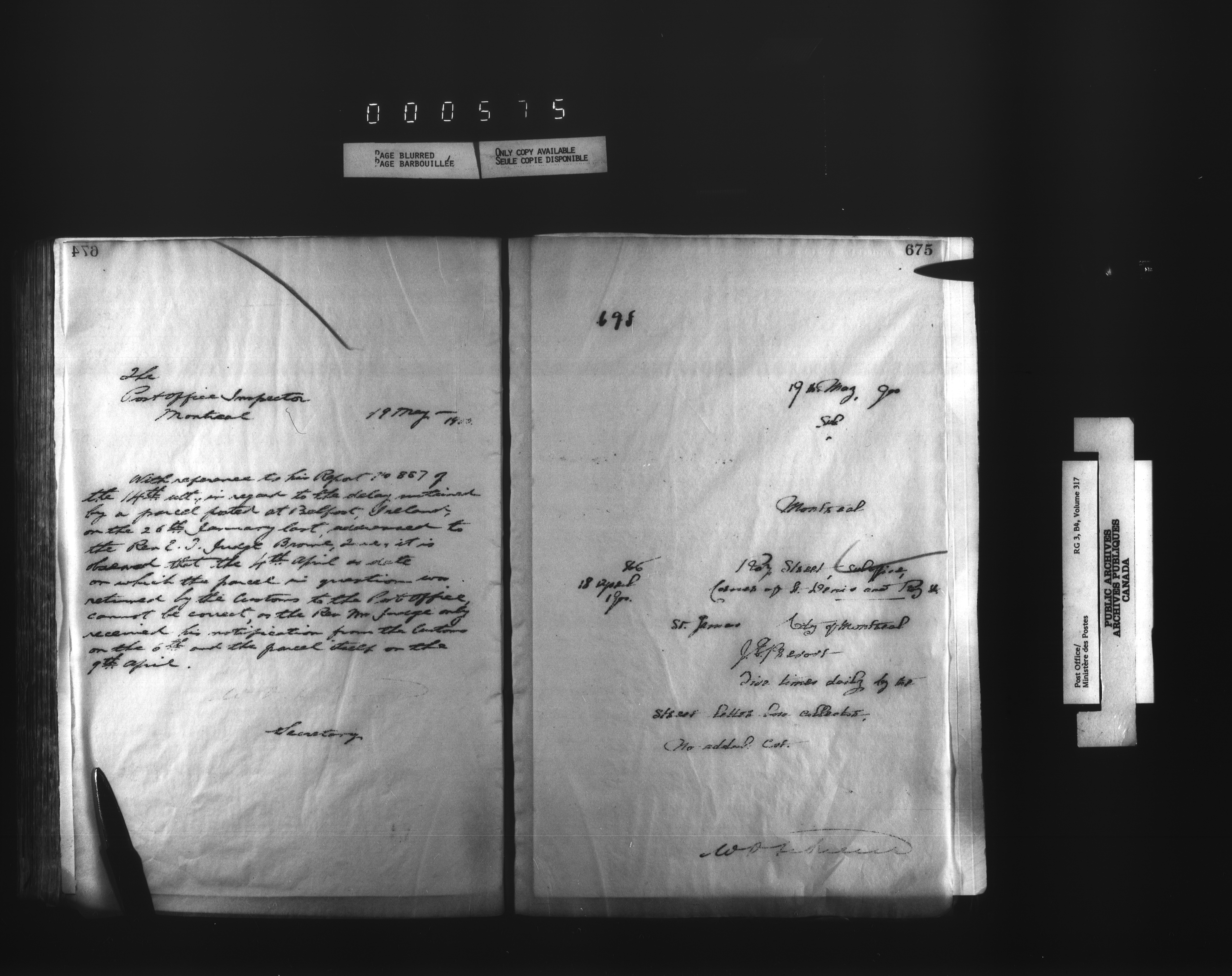 Correspondence from the Secretary to Post Office Inspectors : Letterbooks, Quebec- Montreal - 1725
