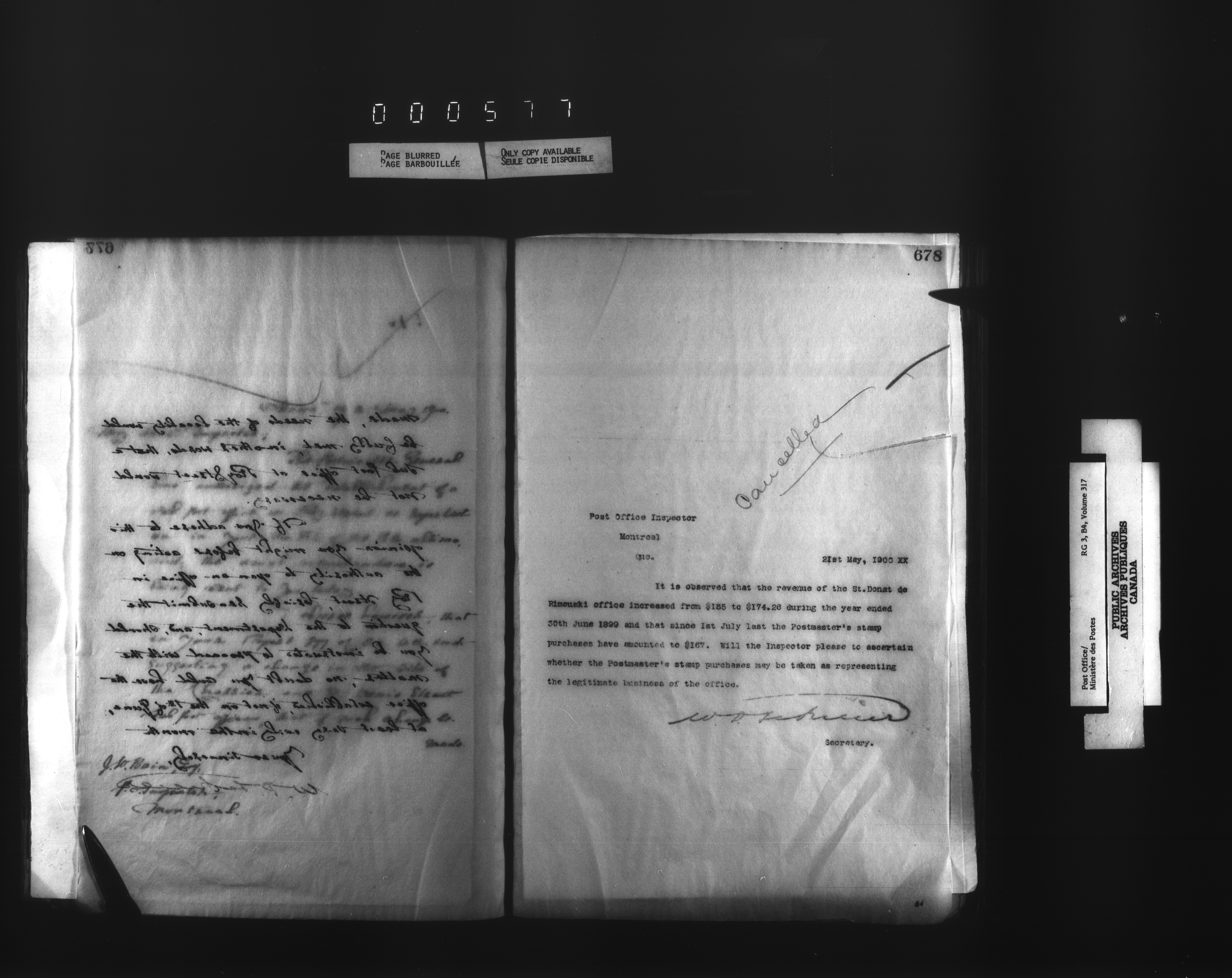 Correspondence from the Secretary to Post Office Inspectors : Letterbooks, Quebec- Montreal - 1725
