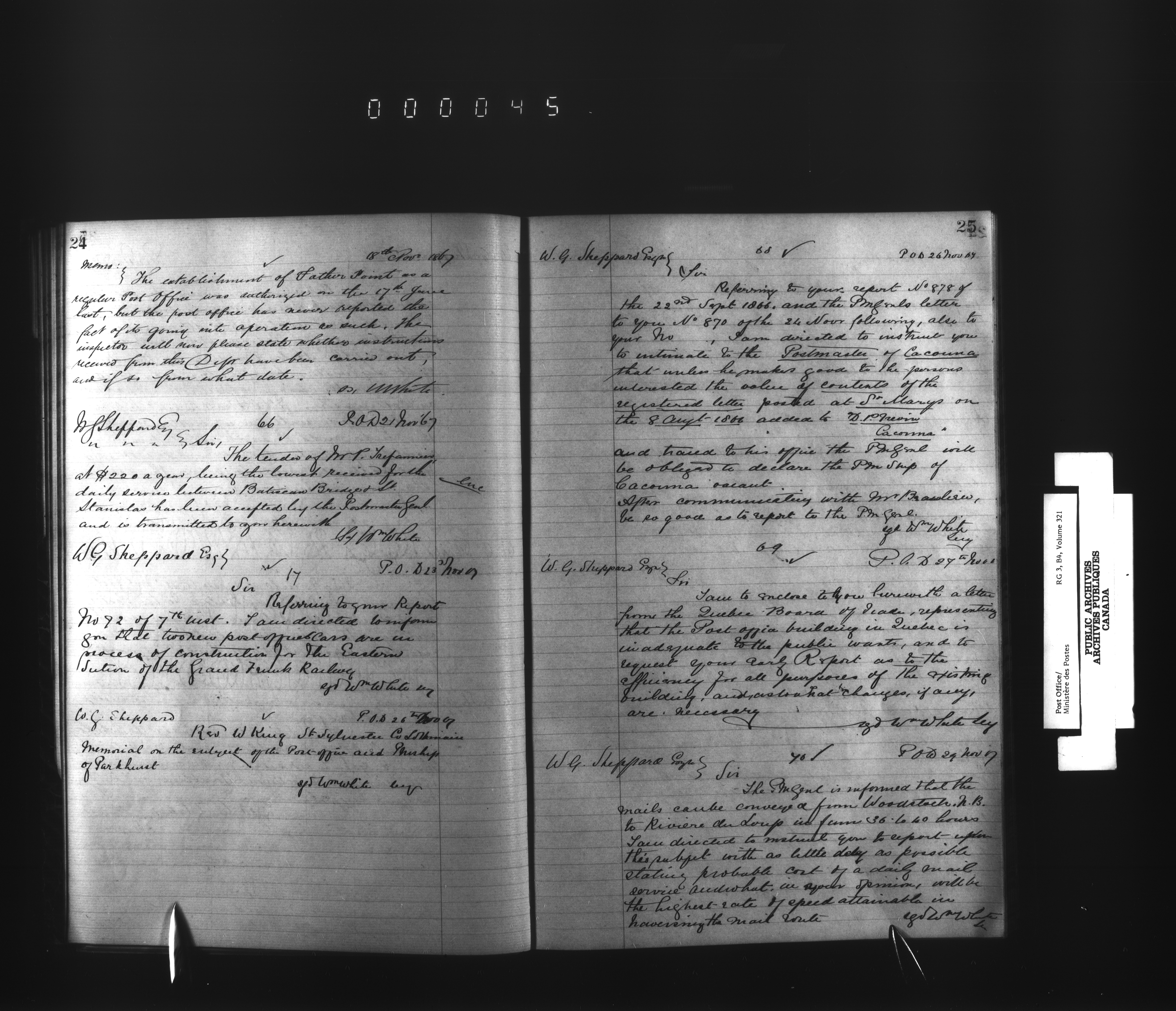 Correspondence from the Secretary to Post Office Inspectors : Letterbooks, Quebec- Montreal - 1726