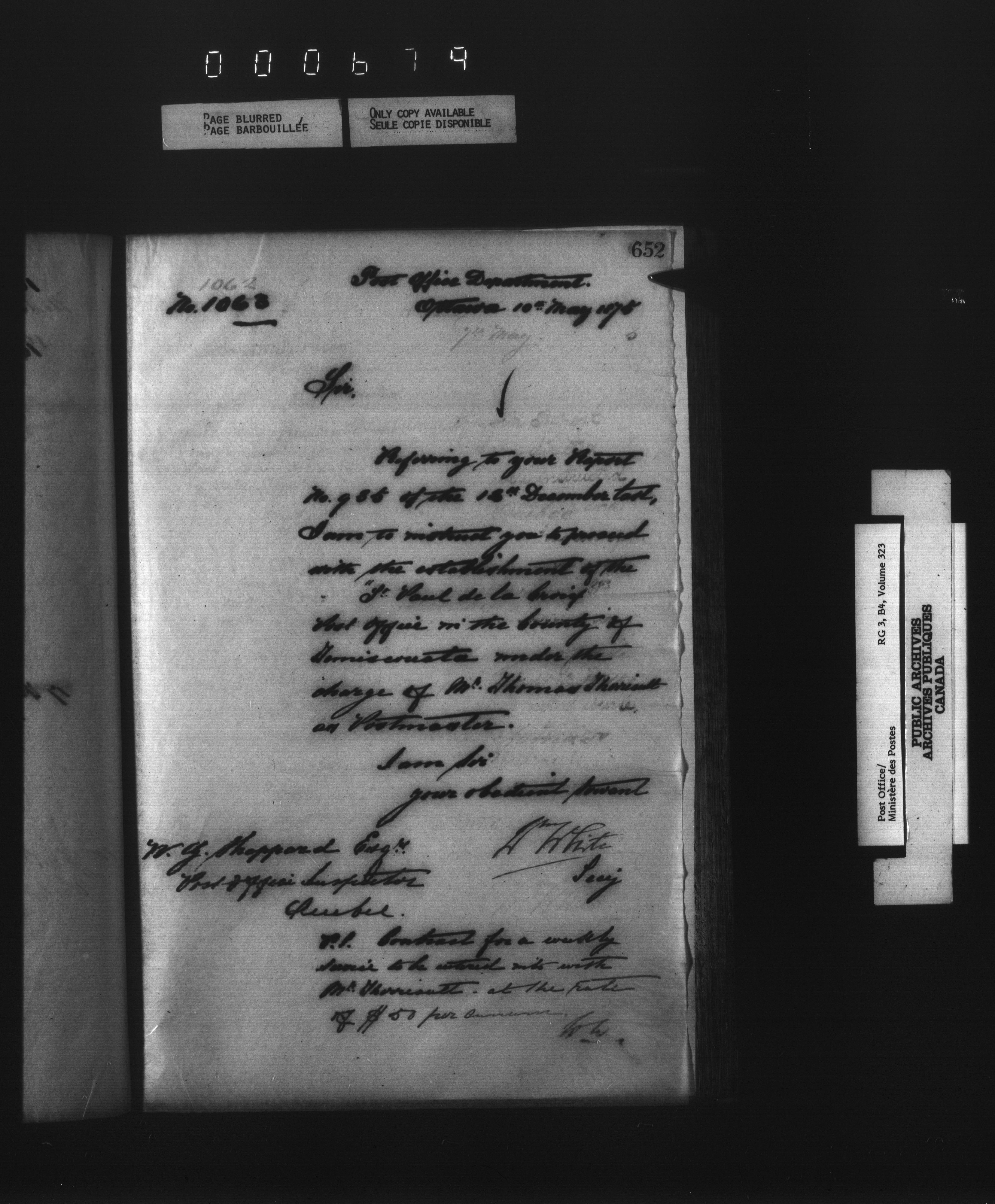 Deputy Postmaster General : correspondence addressed to the Post Office Inspectors, 1851-1902 : T-1727
