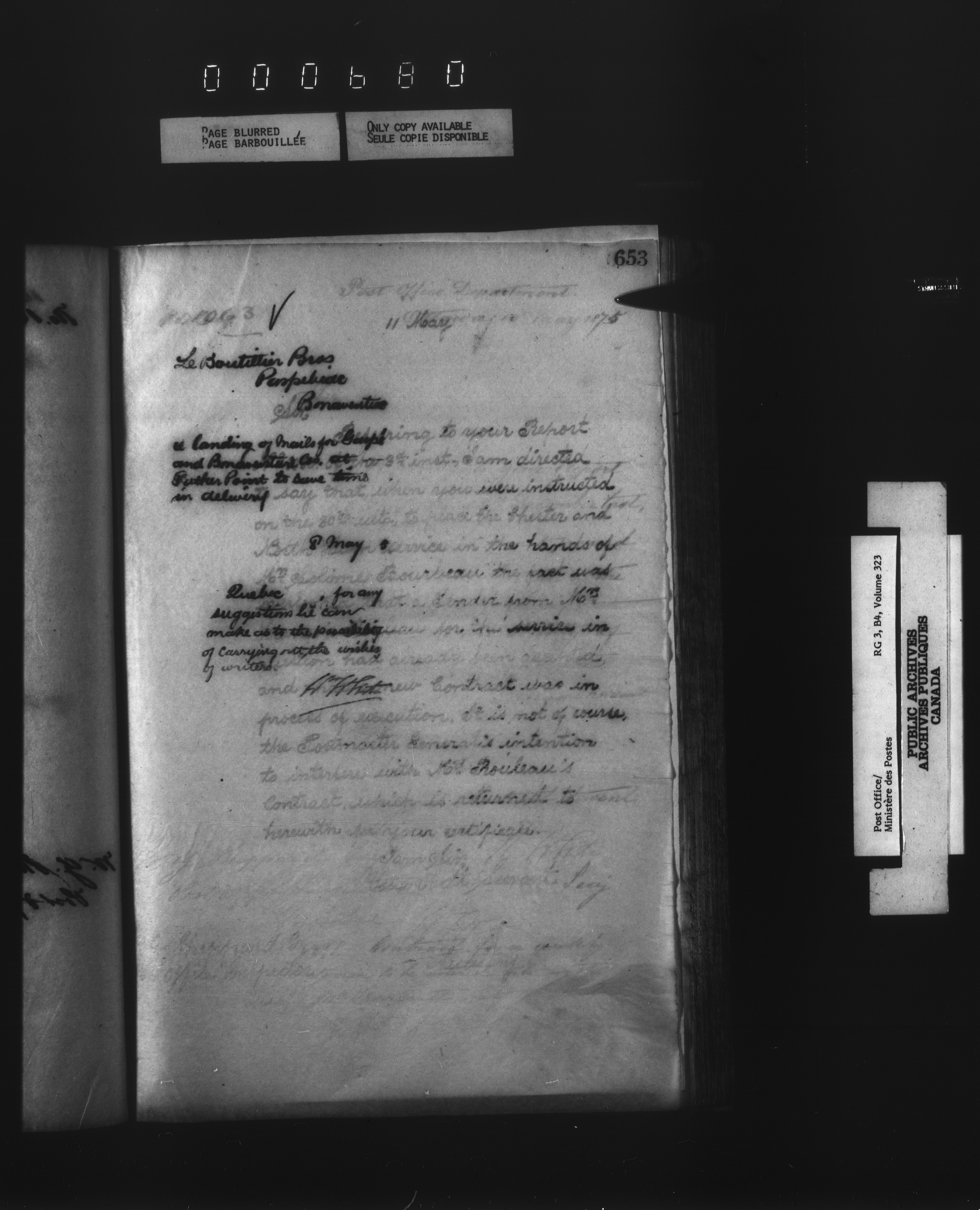Correspondence from the Secretary to Post Office Inspectors : Letterbooks, Quebec- Quebec - 1727