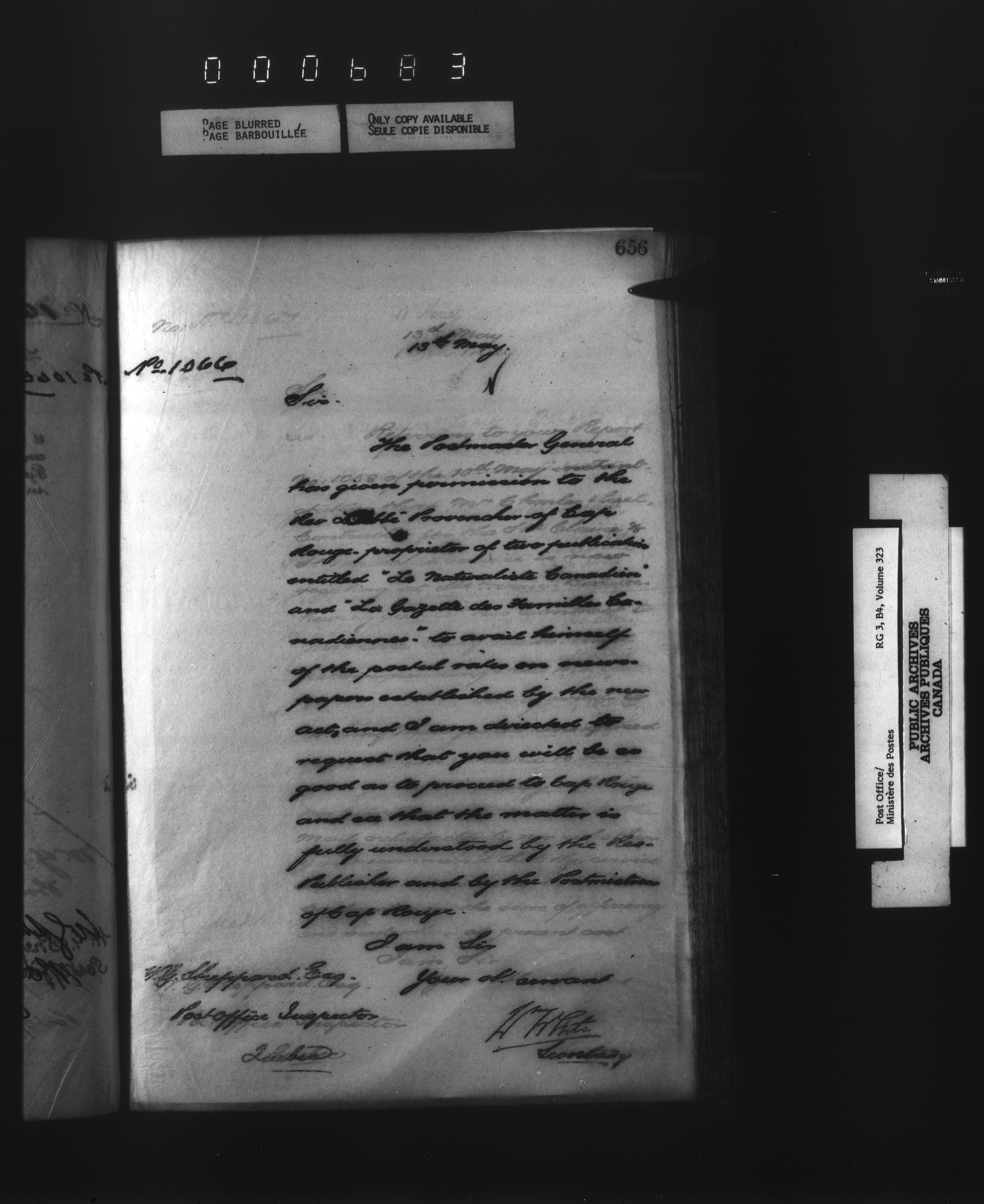 Deputy Postmaster General : correspondence addressed to the Post Office Inspectors, 1851-1902 : T-1727
