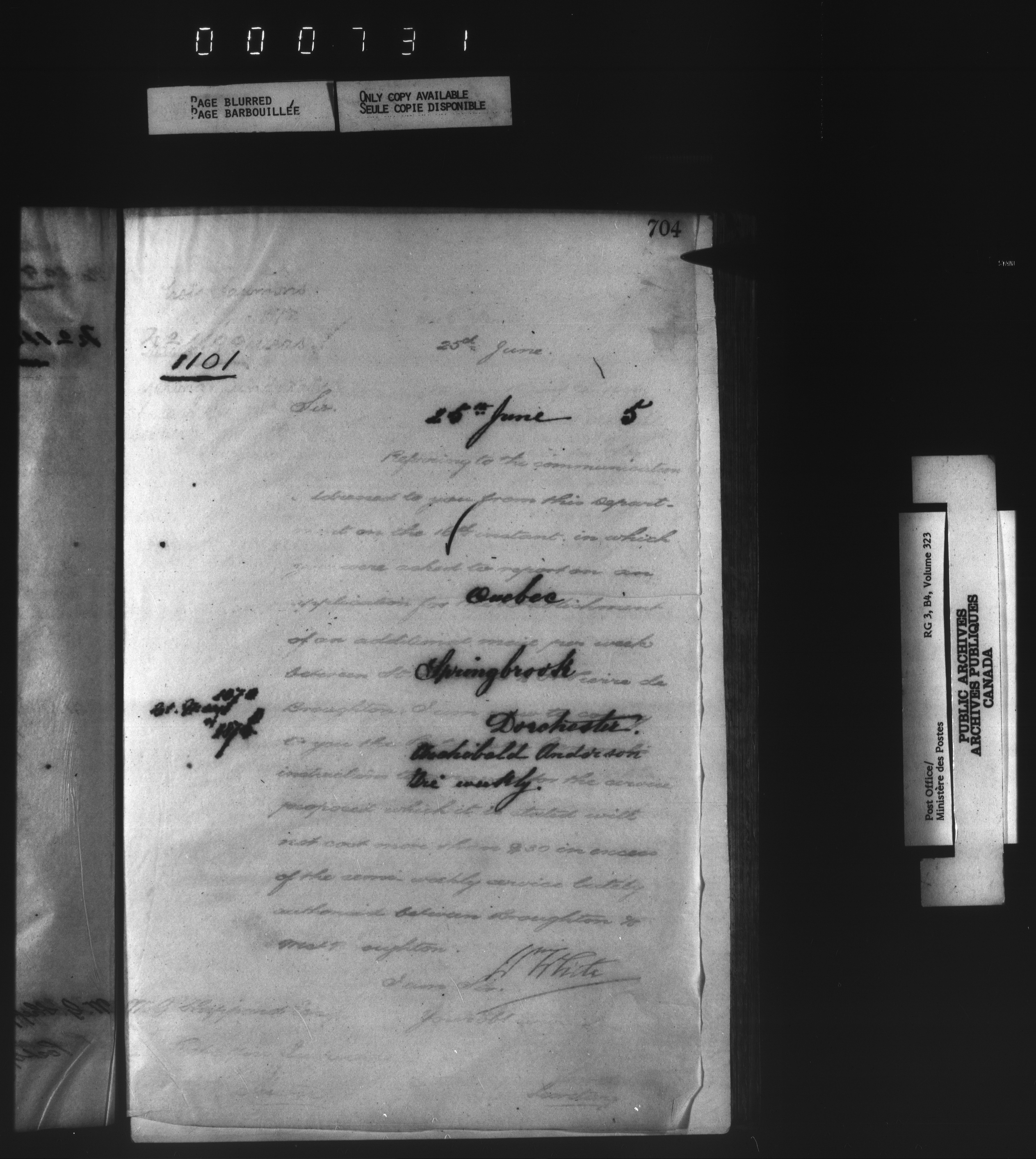 Correspondence from the Secretary to Post Office Inspectors : Letterbooks, Quebec- Quebec - 1728
