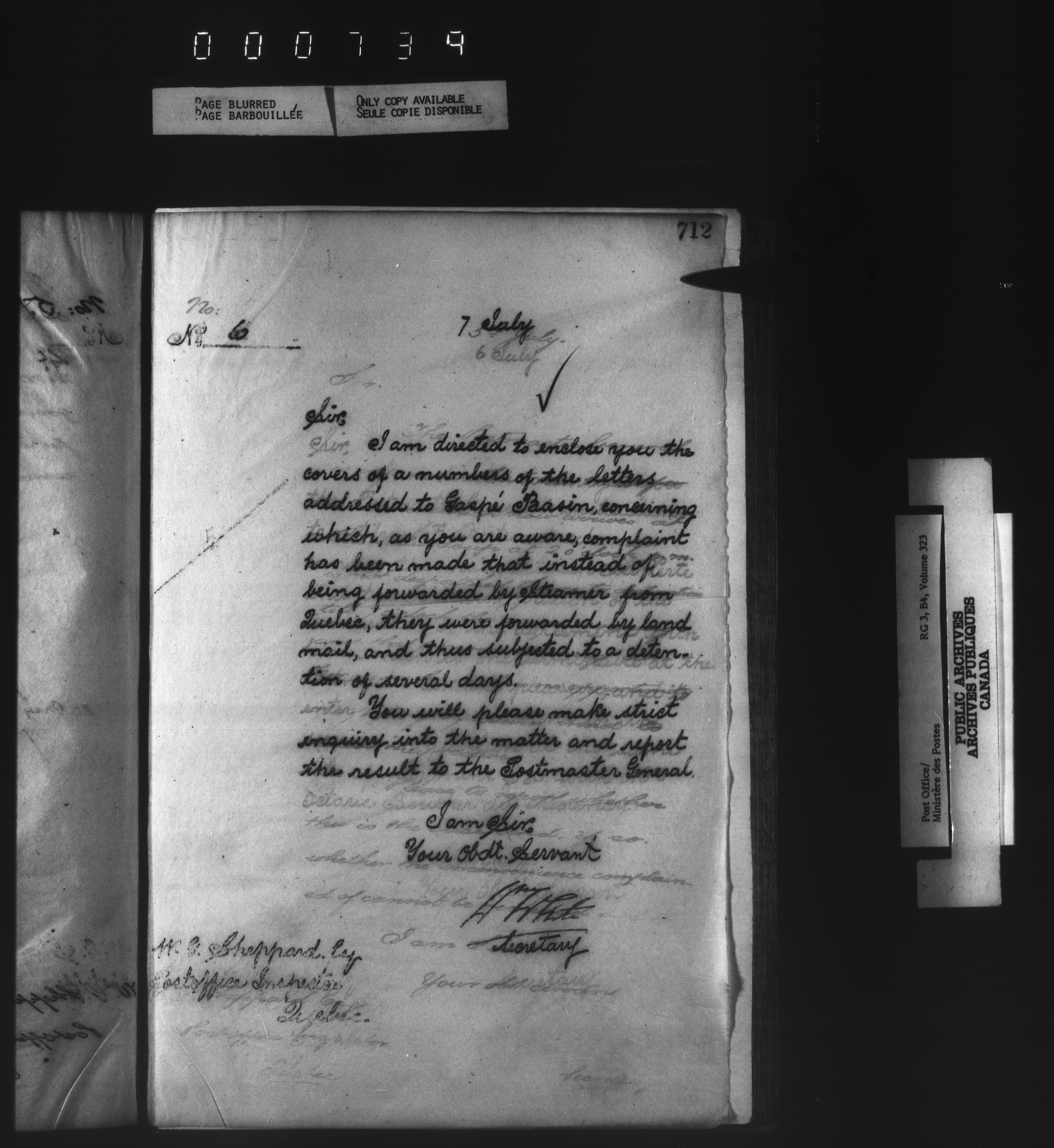 Correspondence from the Secretary to Post Office Inspectors : Letterbooks, Quebec- Quebec - 1728
