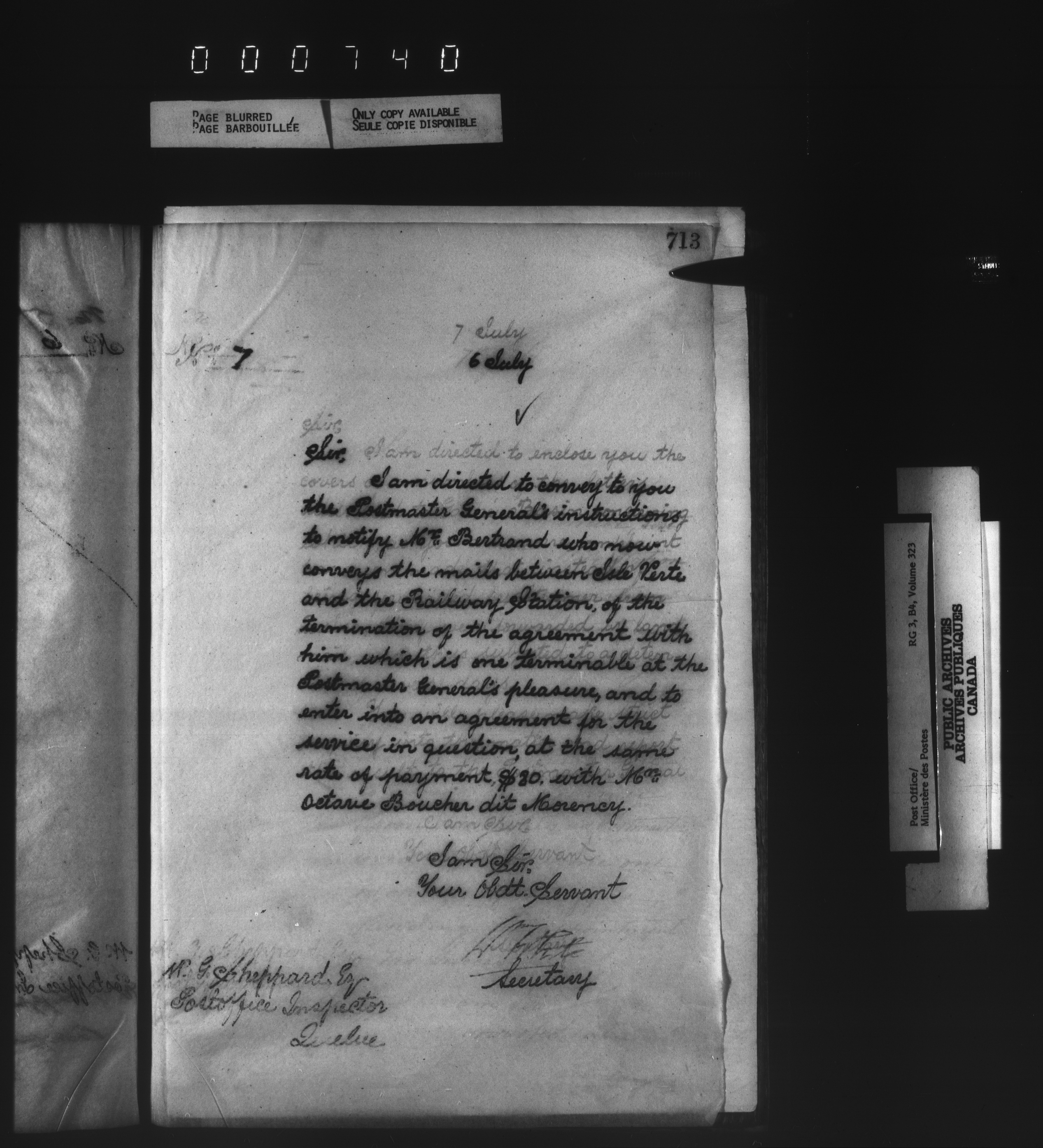 Correspondence from the Secretary to Post Office Inspectors : Letterbooks, Quebec- Quebec - 1728