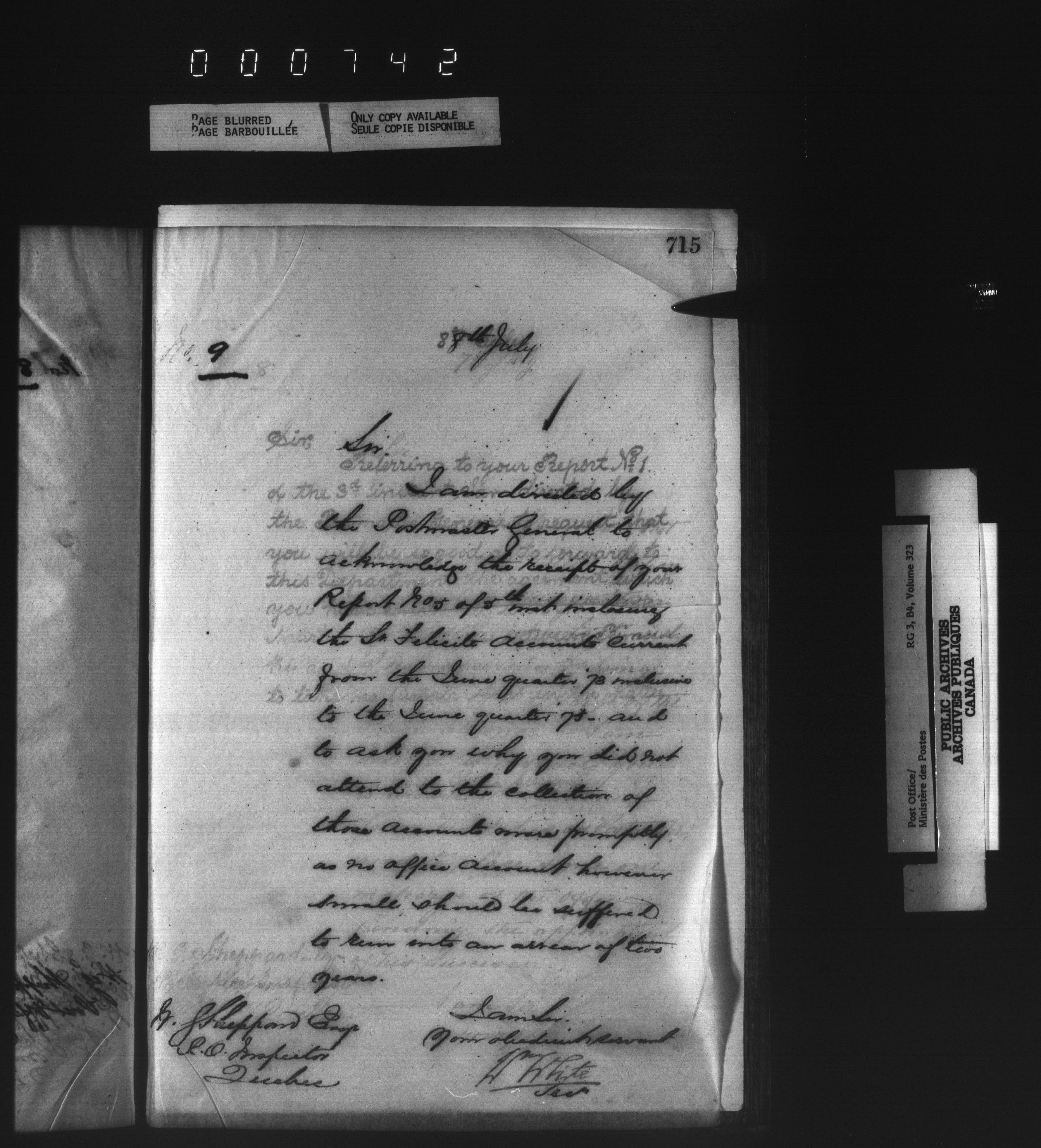 Correspondence from the Secretary to Post Office Inspectors : Letterbooks, Quebec- Quebec - 1728