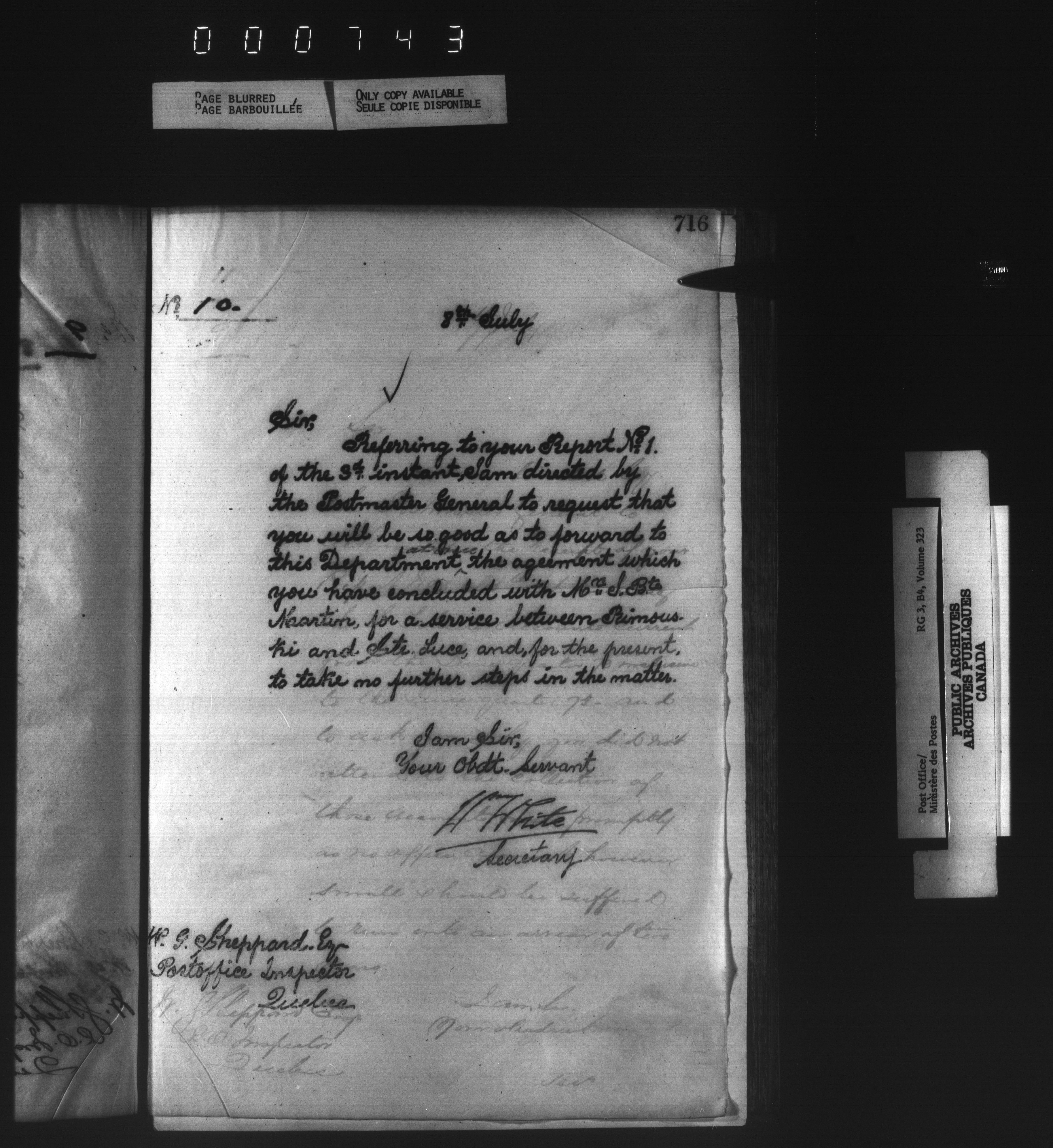 Correspondence from the Secretary to Post Office Inspectors : Letterbooks, Quebec- Quebec - 1728