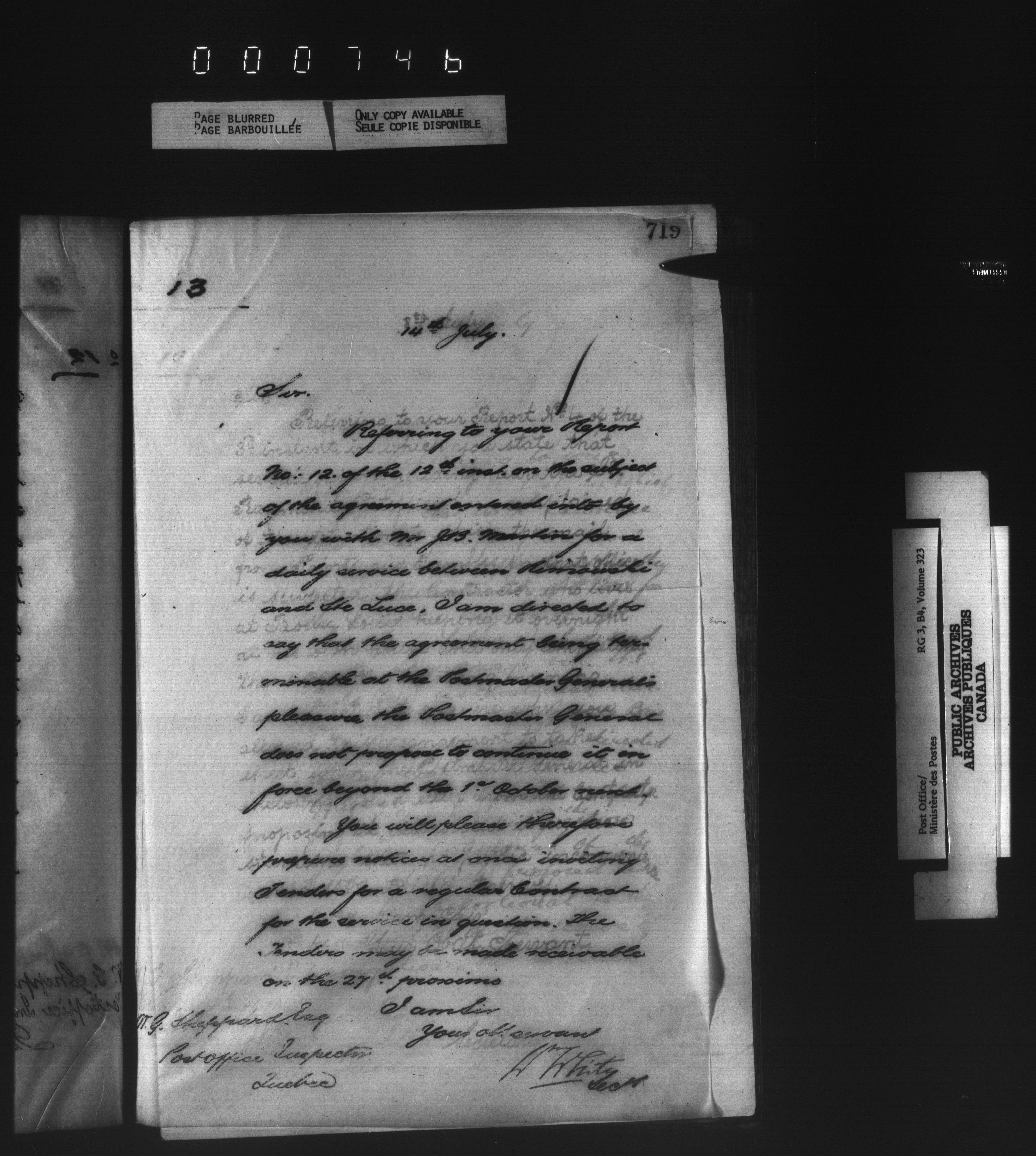 Correspondence from the Secretary to Post Office Inspectors : Letterbooks, Quebec- Quebec - 1728