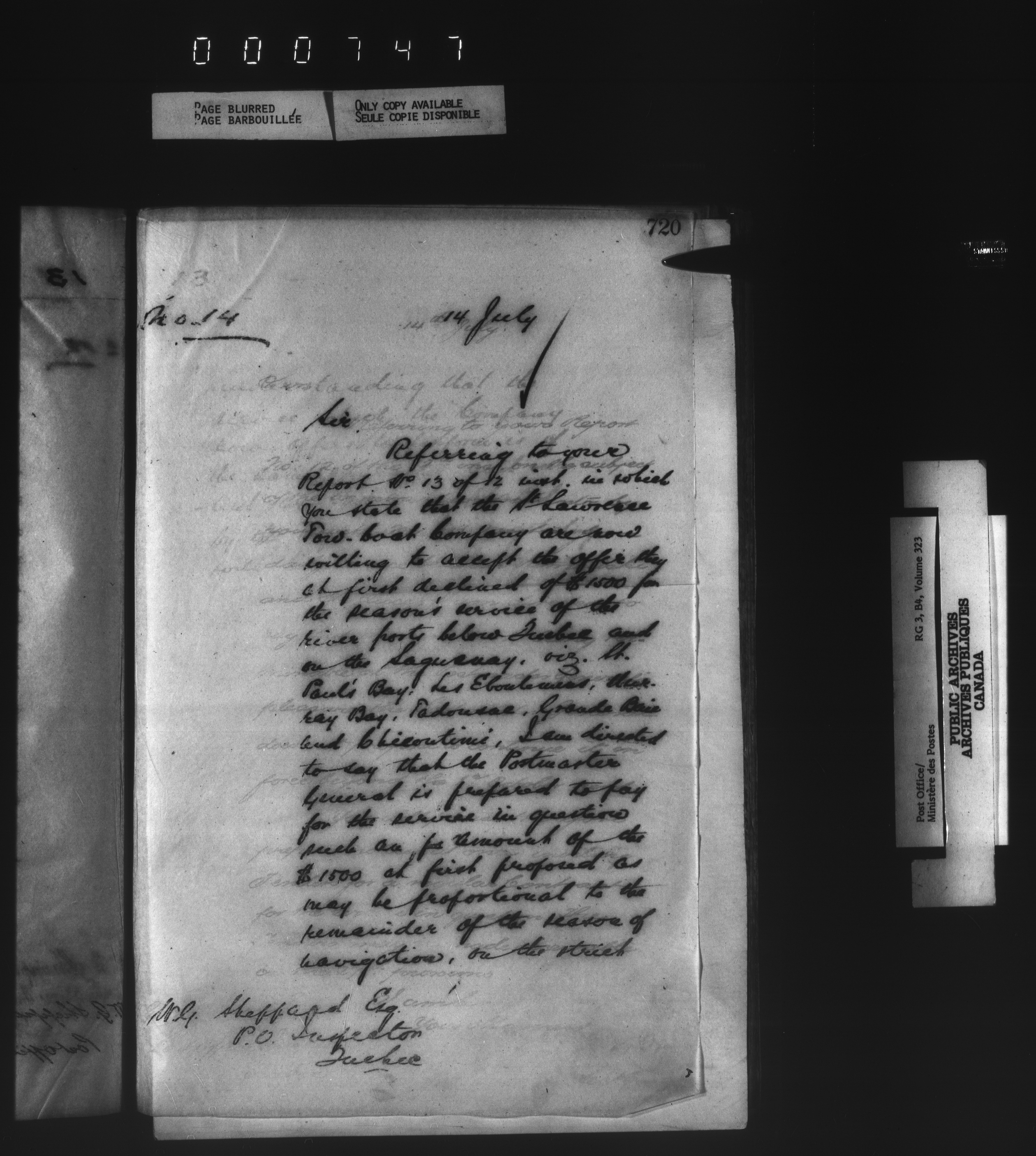 Correspondence from the Secretary to Post Office Inspectors : Letterbooks, Quebec- Quebec - 1728