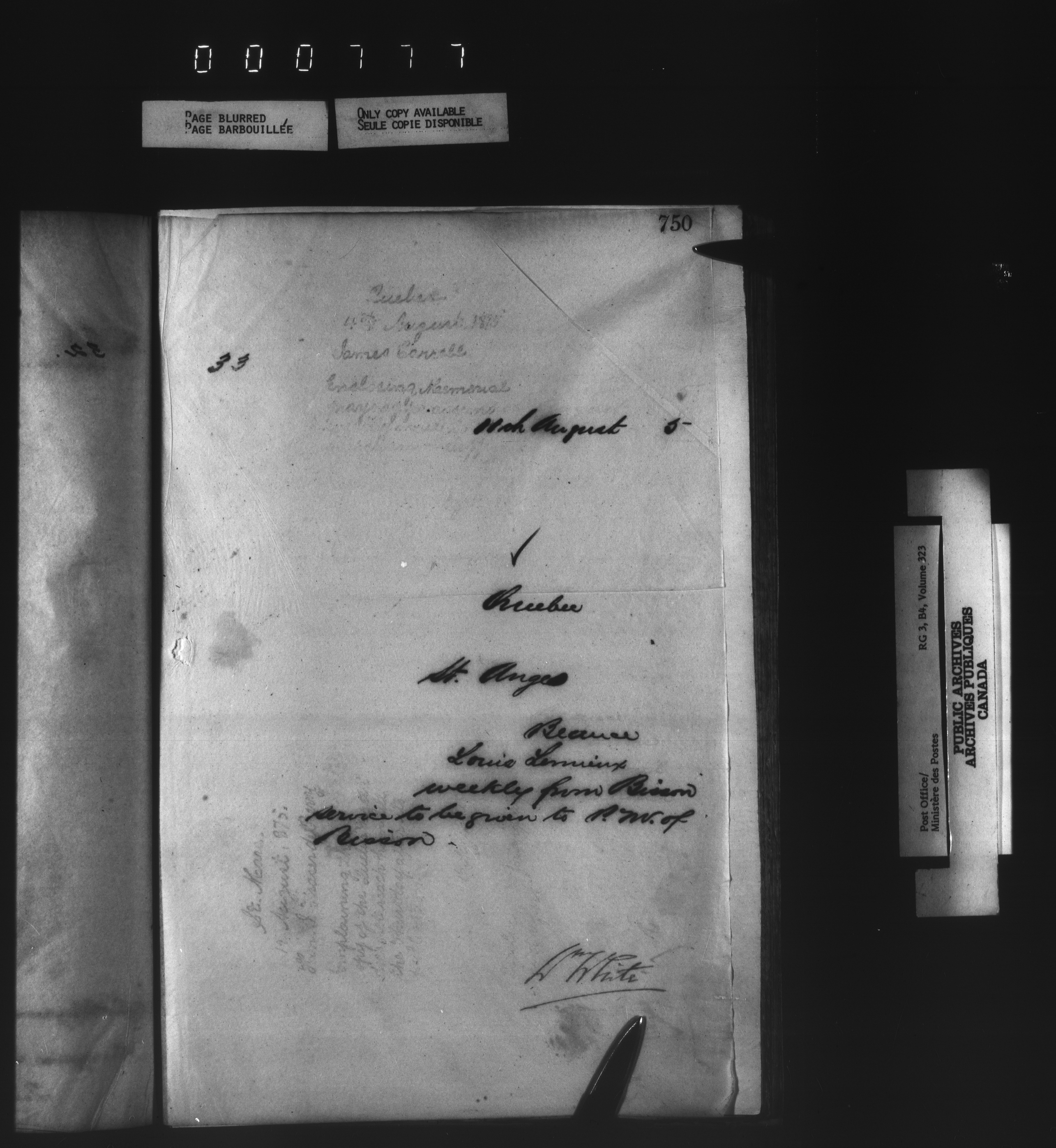 Correspondence from the Secretary to Post Office Inspectors : Letterbooks, Quebec- Quebec - 1728