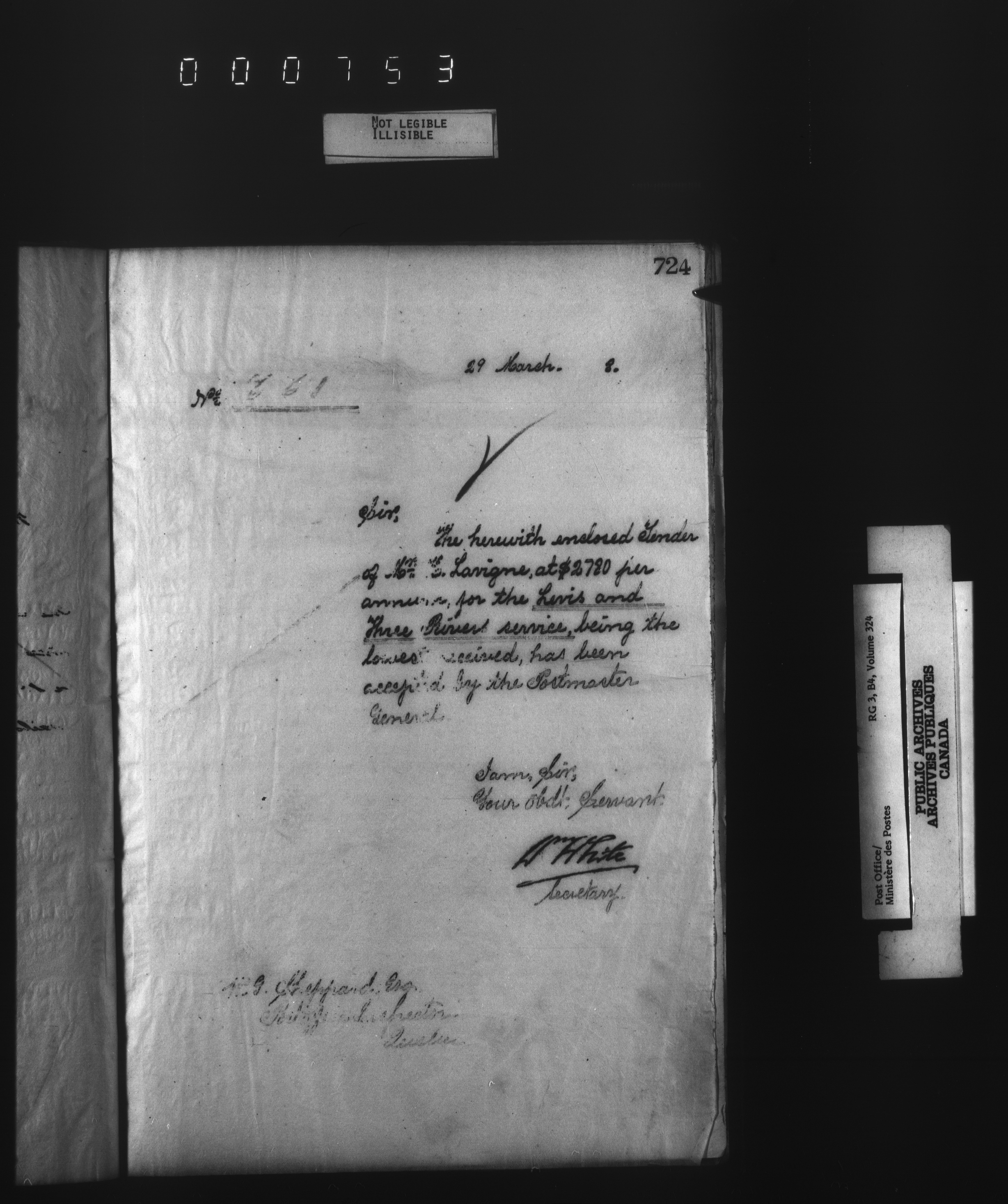 Correspondence from the Secretary to Post Office Inspectors : Letterbooks, Quebec- Quebec - 1729