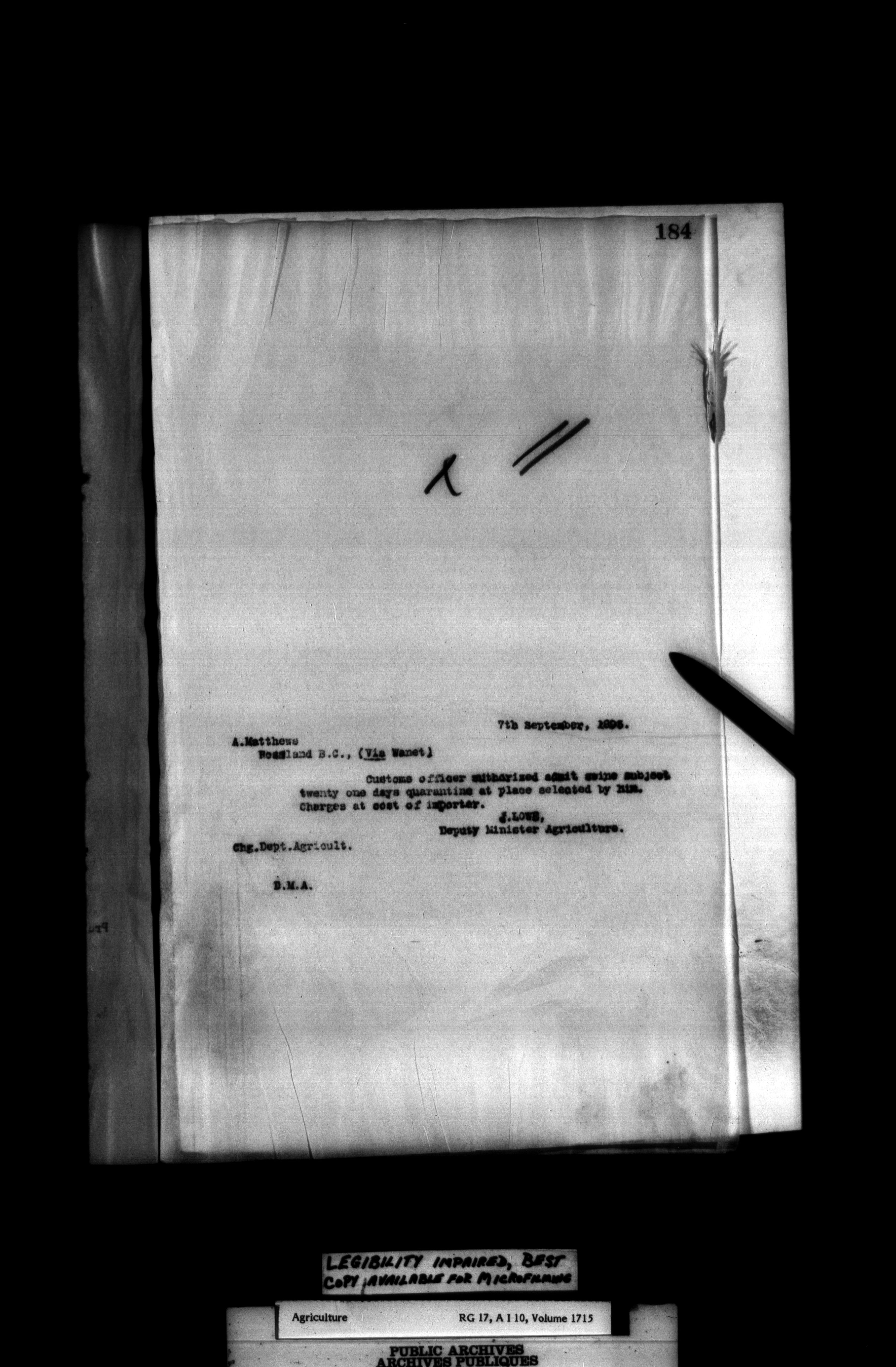 Department of Agriculture : Deputy Minister's letterbooks, 1888-1916 - 173