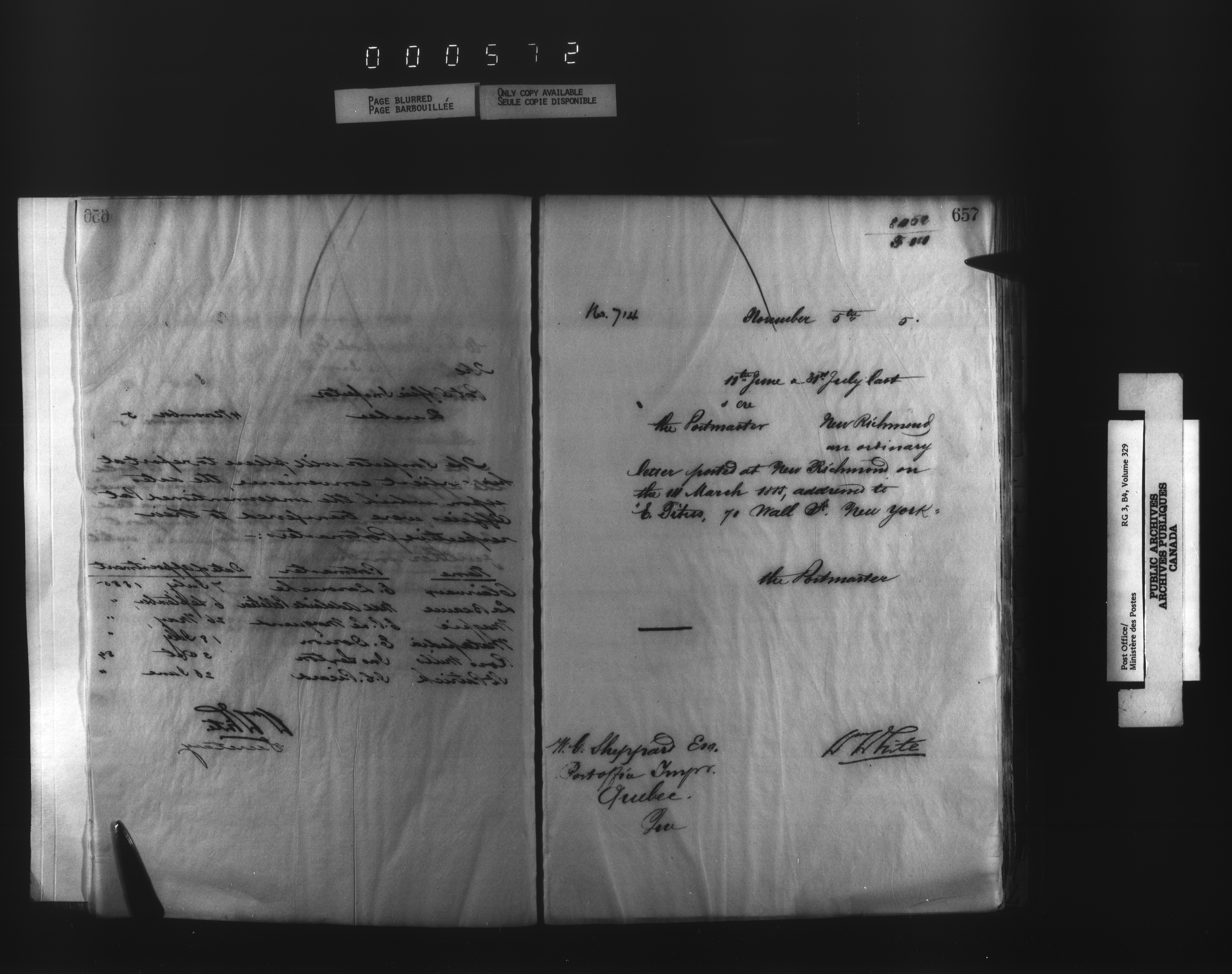 Correspondence from the Secretary to Post Office Inspectors : Letterbooks, Quebec- Quebec - 1732