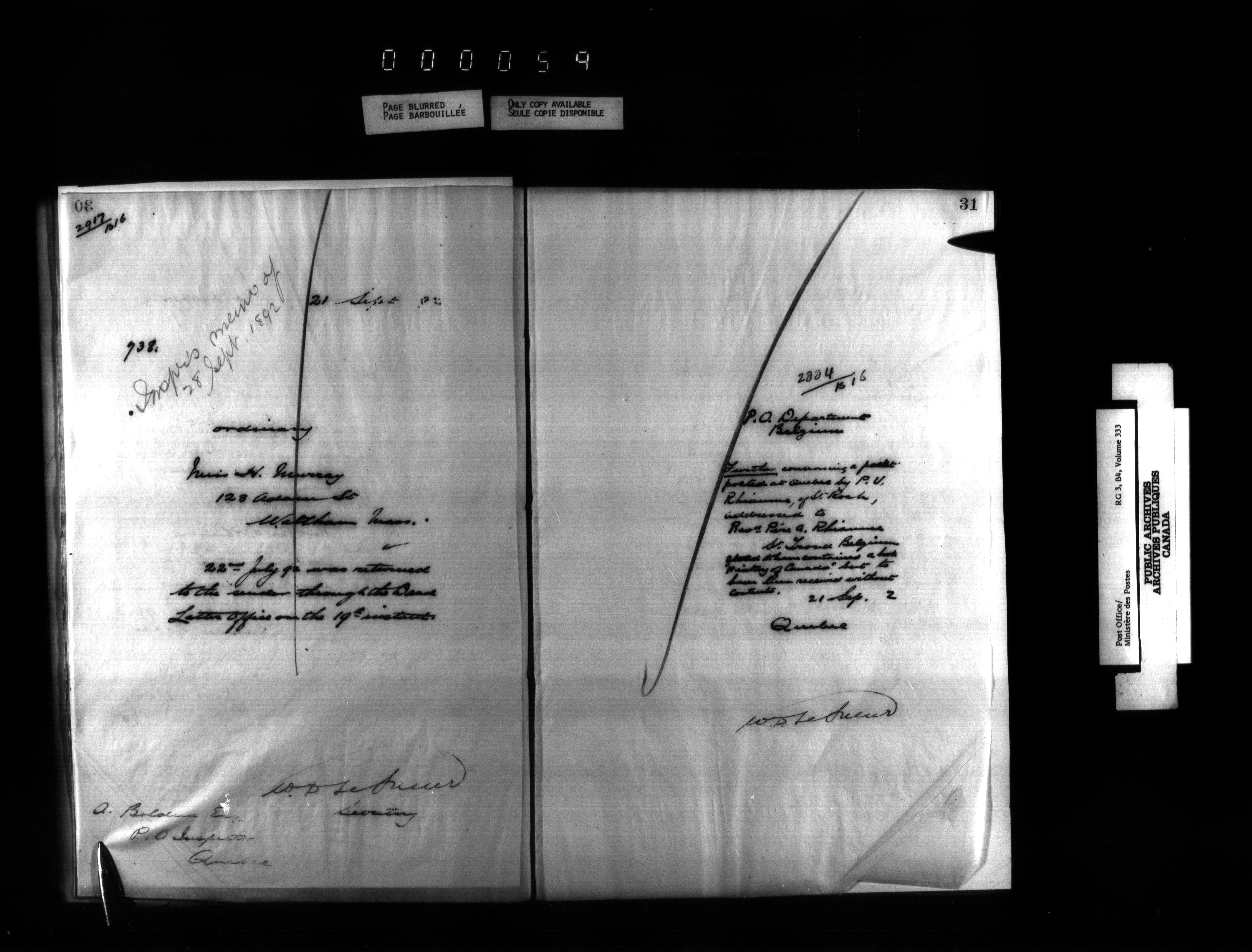 Correspondence from the Secretary to Post Office Inspectors : Letterbooks, Quebec- Quebec - 1736