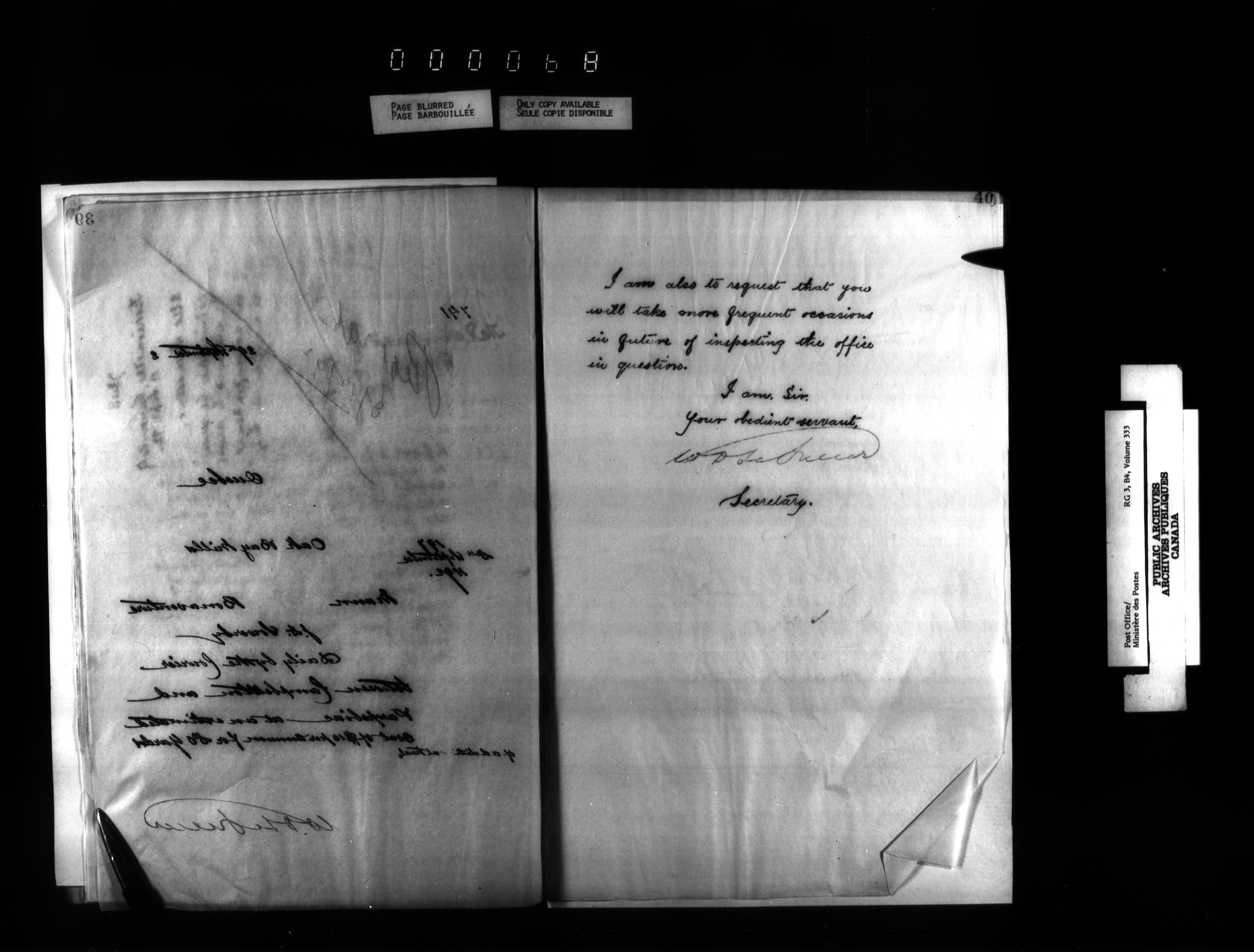Correspondence from the Secretary to Post Office Inspectors : Letterbooks, Quebec- Quebec - 1736
