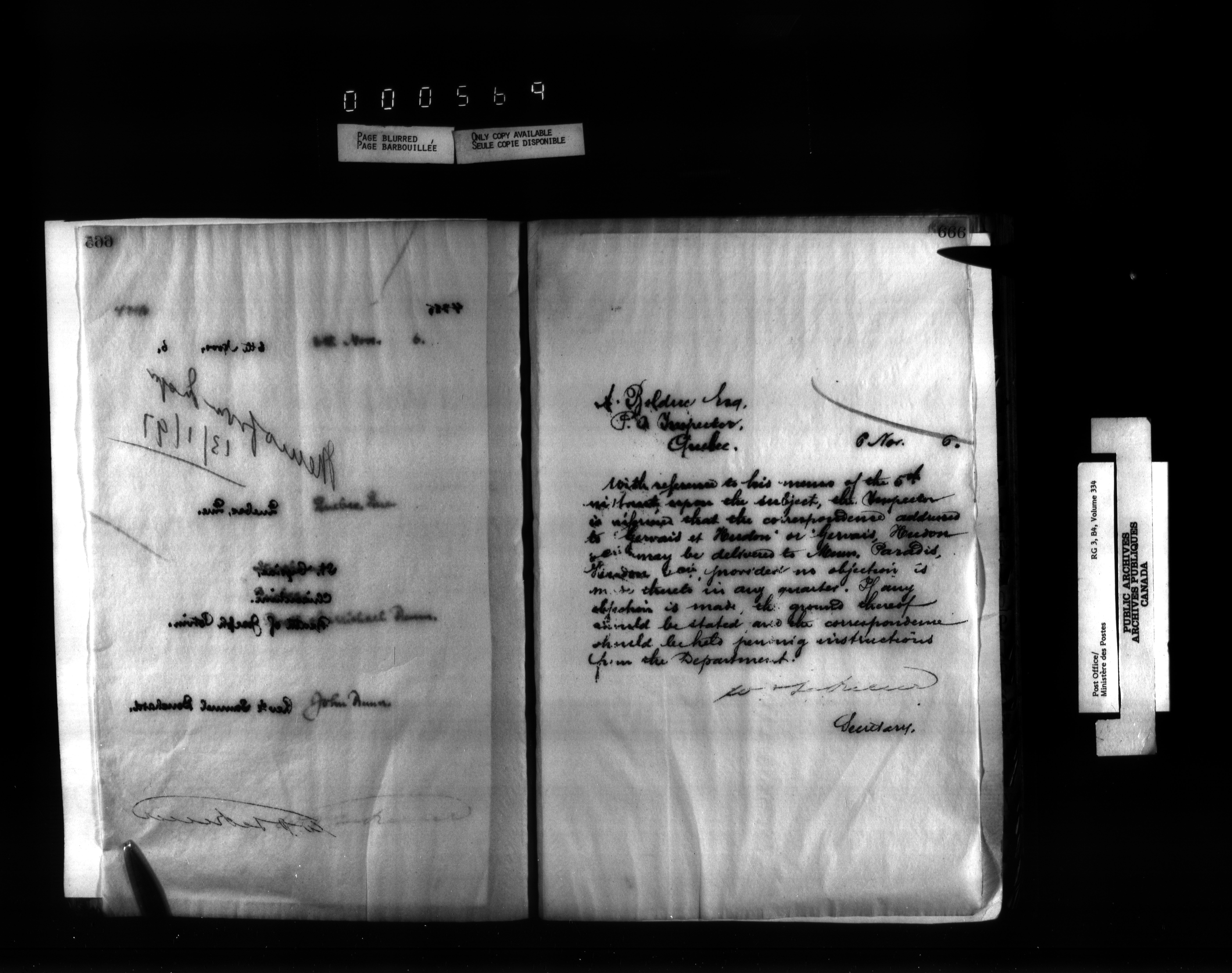 Correspondence from the Secretary to Post Office Inspectors : Letterbooks, Quebec- Quebec - 1737