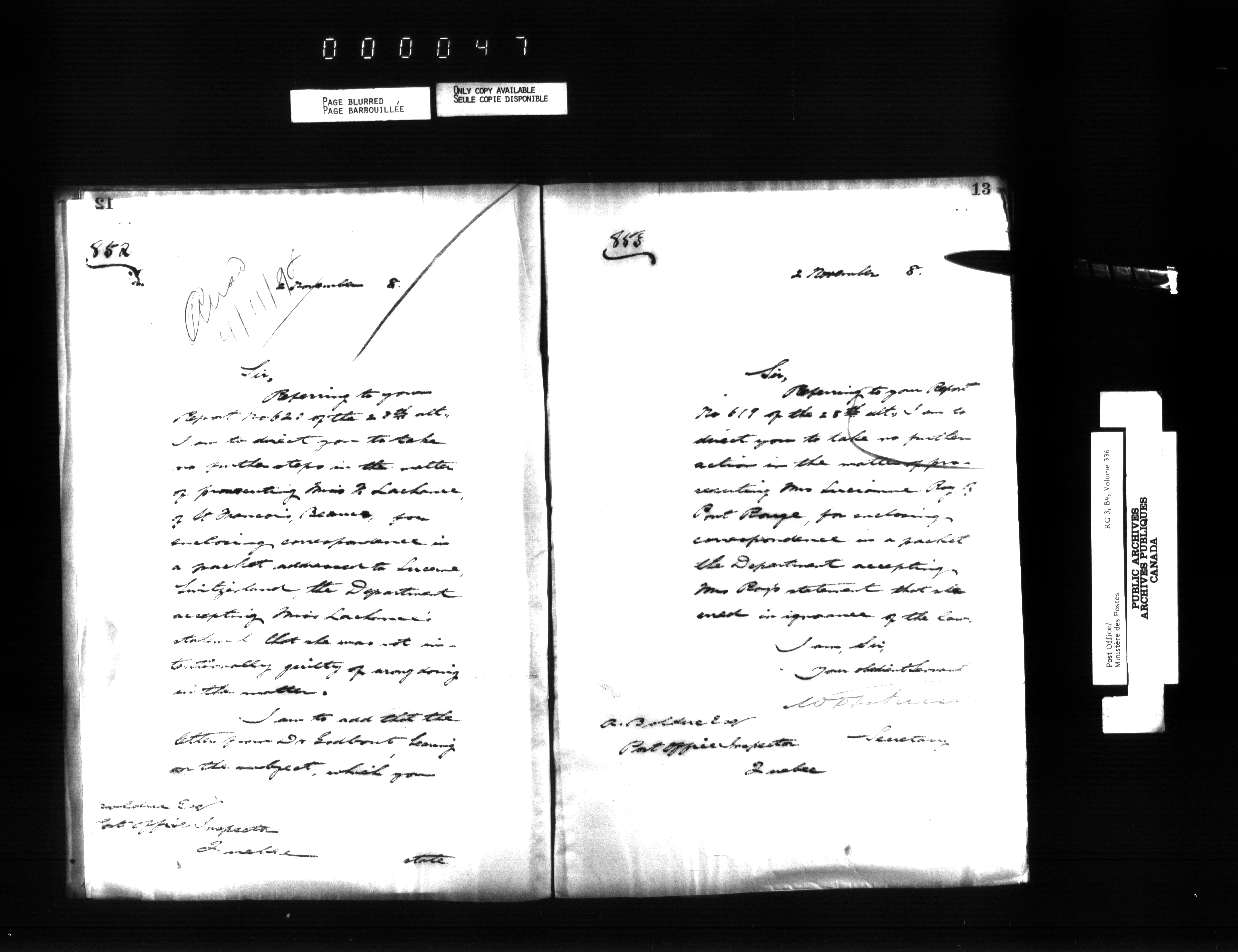 Correspondence from the Secretary to Post Office Inspectors : Letterbooks, Quebec- Quebec - 1739