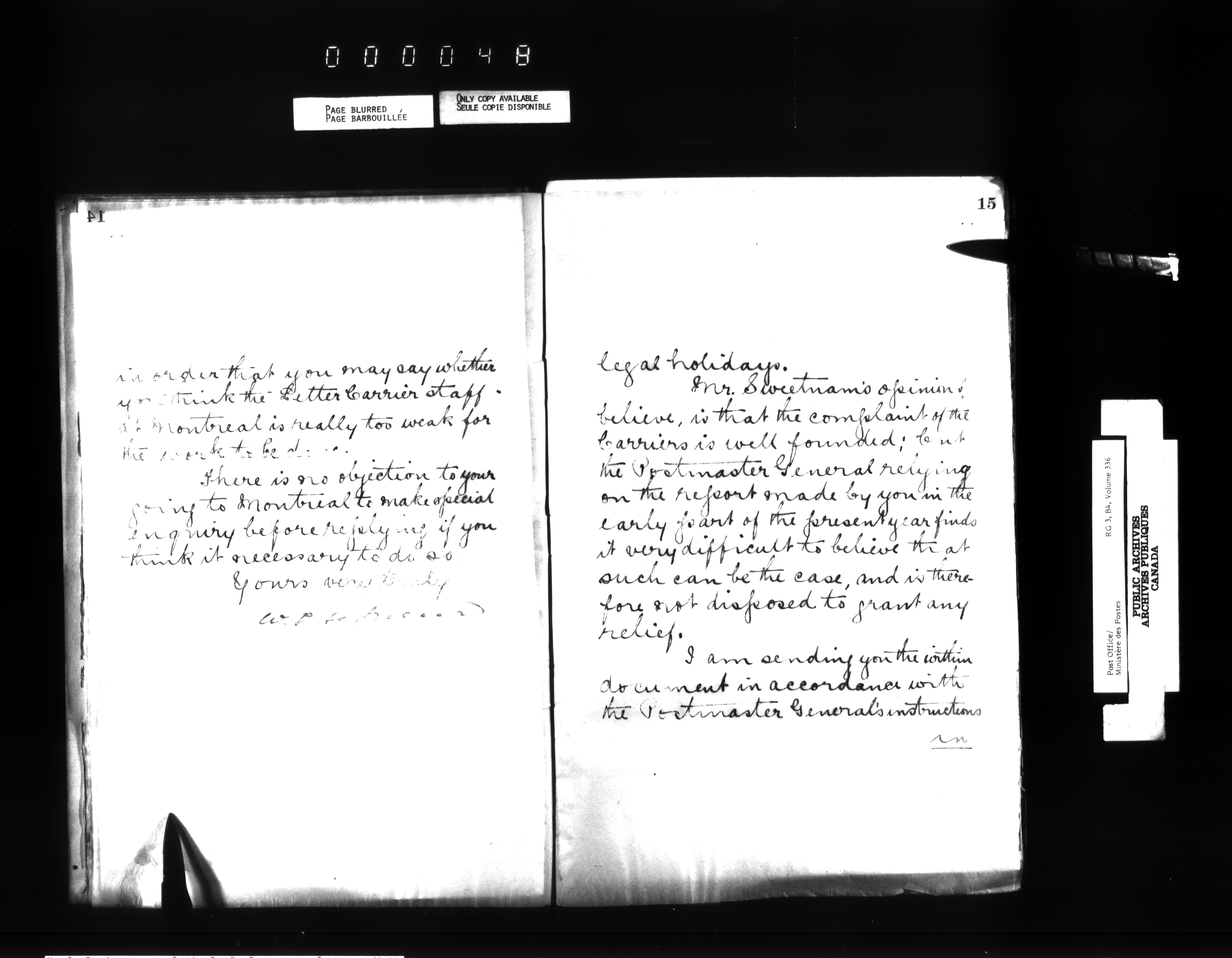 Correspondence from the Secretary to Post Office Inspectors : Letterbooks, Quebec- Quebec - 1739