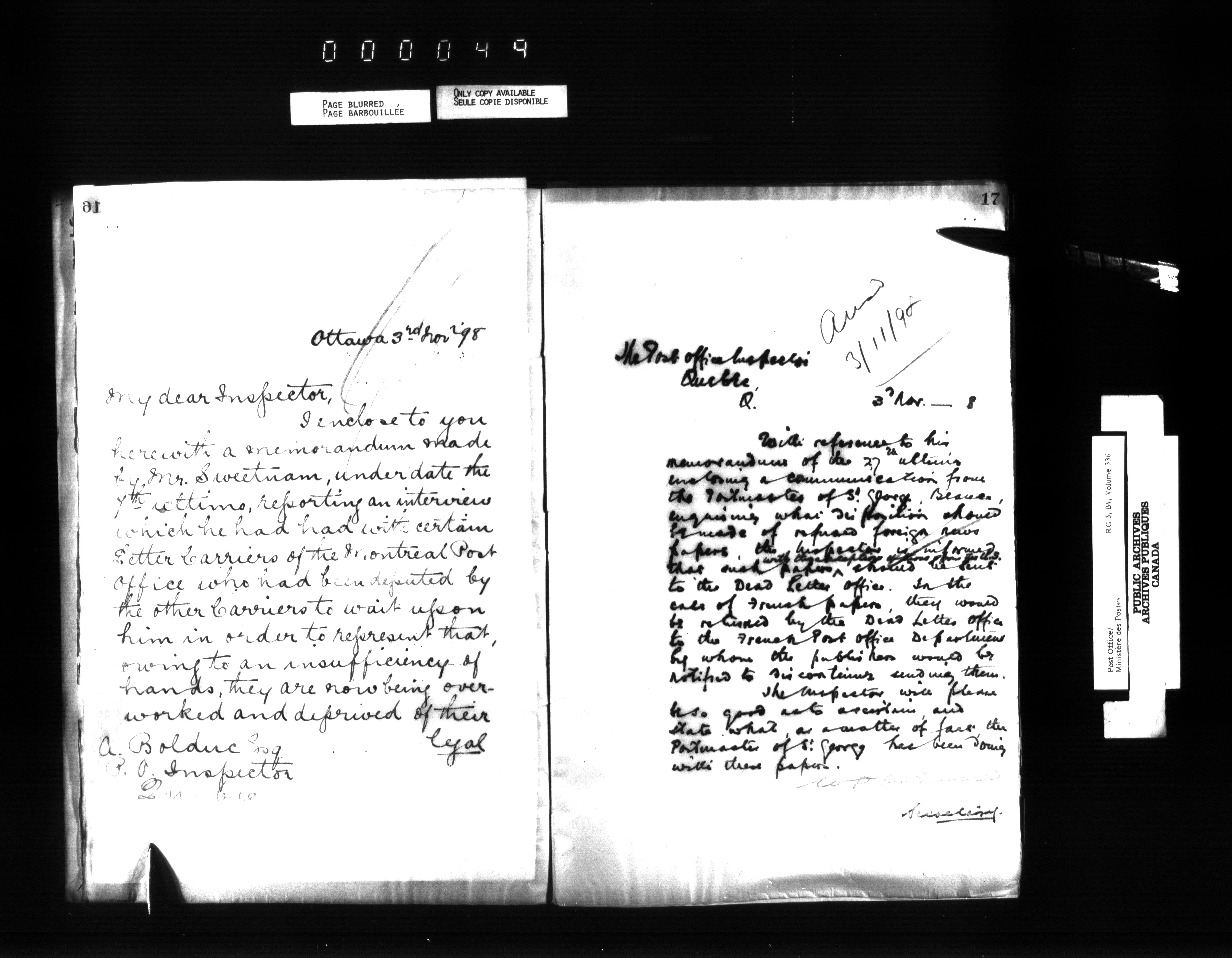 Correspondence from the Secretary to Post Office Inspectors : Letterbooks, Quebec- Quebec - 1739