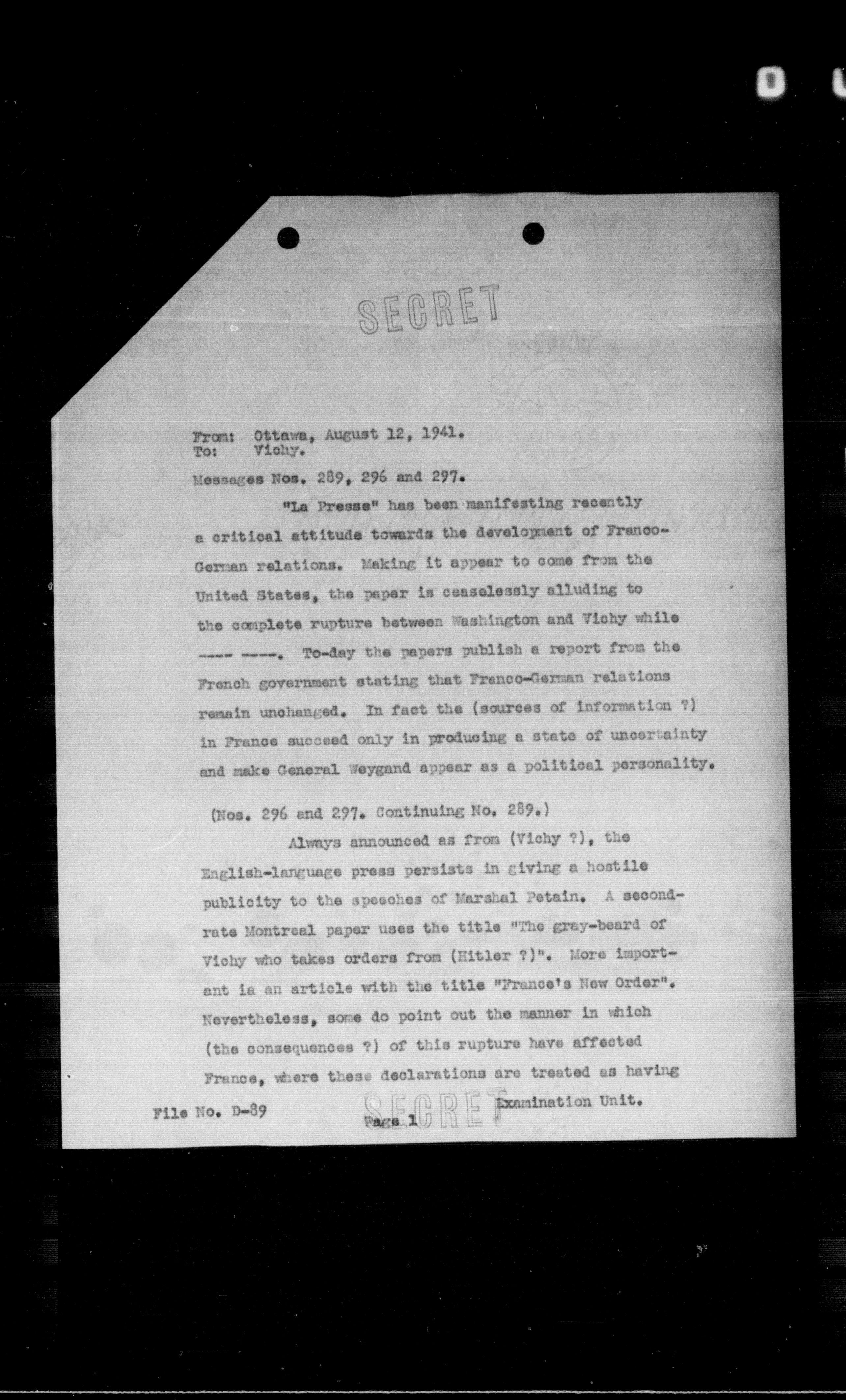 Department of National Defence fonds - Examination Unit (1939-1946) - 17429