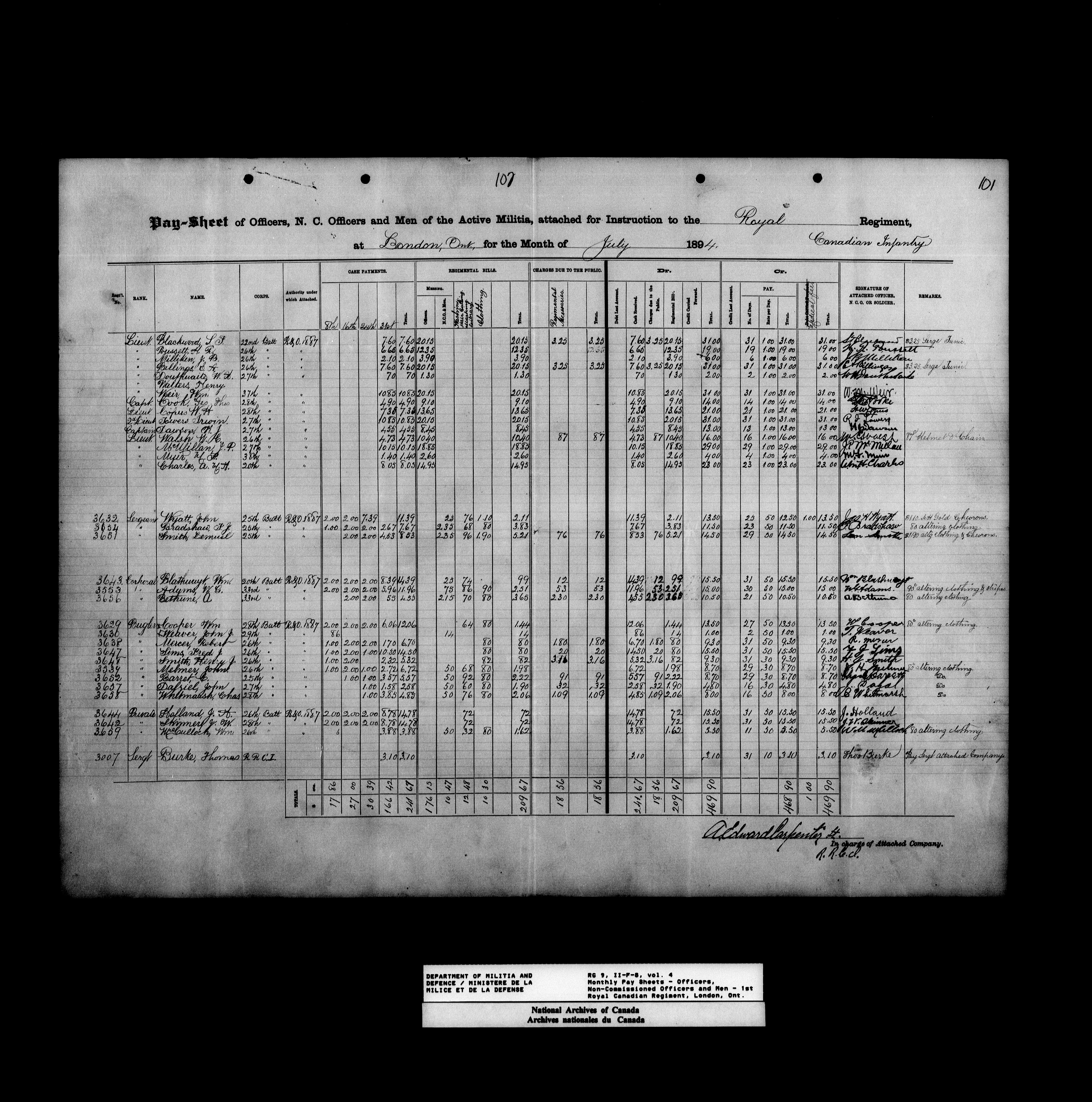 Nominal rolls and paylists for the Permanent Force (1871-1915) - 17431