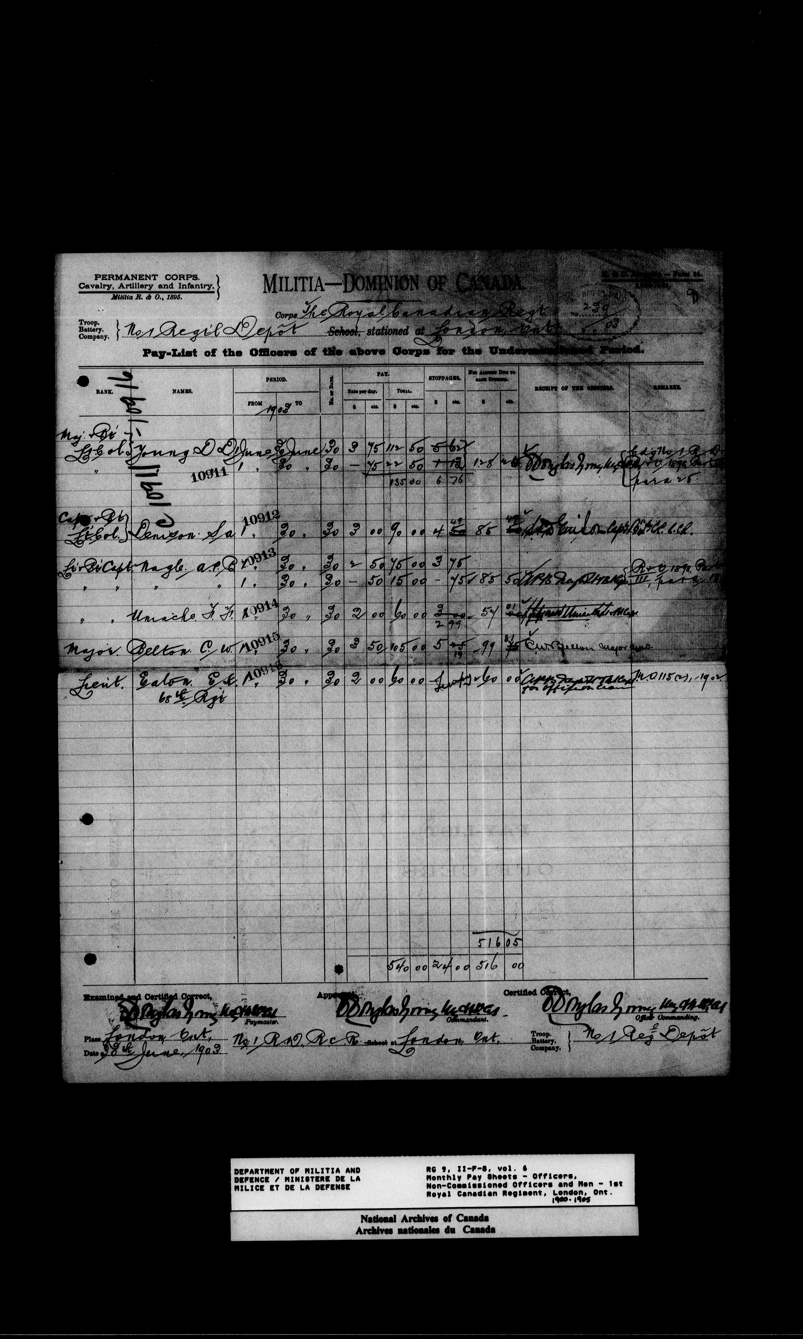 Nominal rolls and paylists for the Permanent Force (1871-1915) - 17432